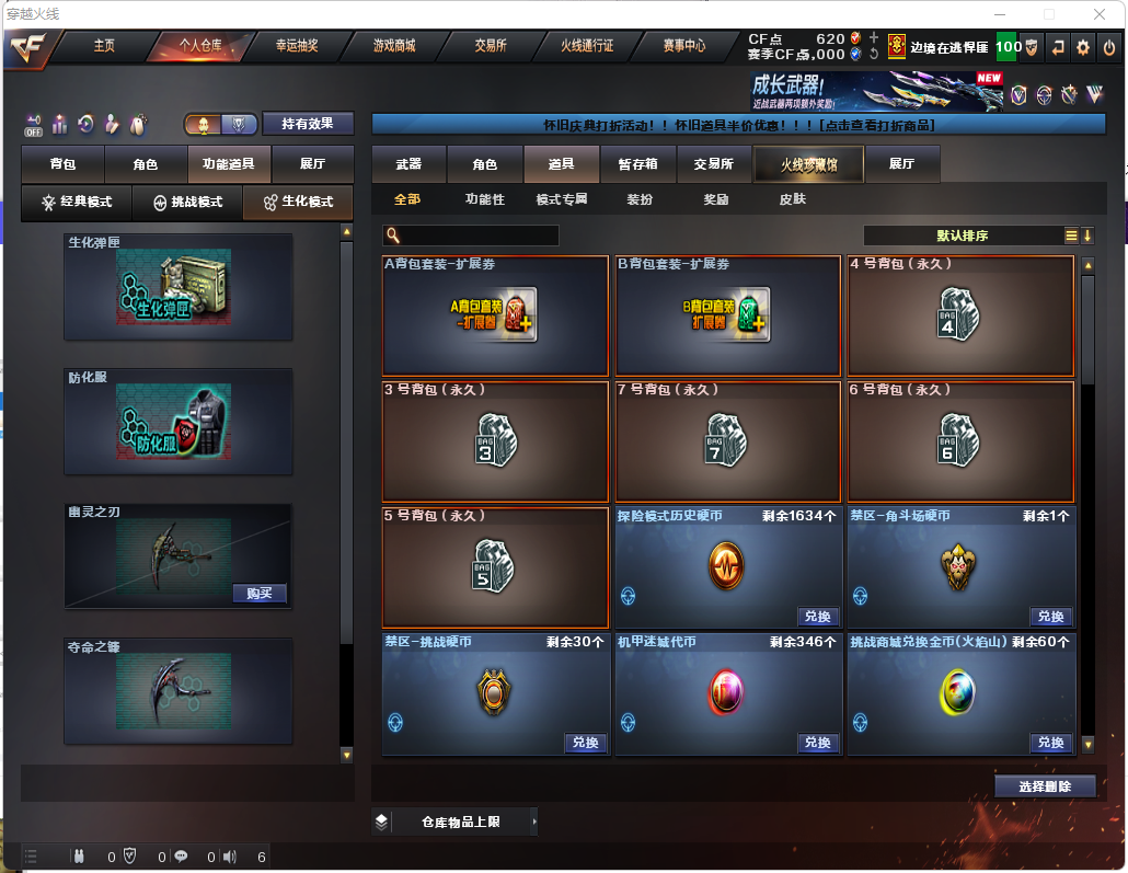 生化炽芒蝶刃♉满氪八面凌龙♉清道夫斯泰尔蝴蝶♉6盘6烈♉幻神炼狱音效卡四防生化背包♉满榴弹不退包全鬼