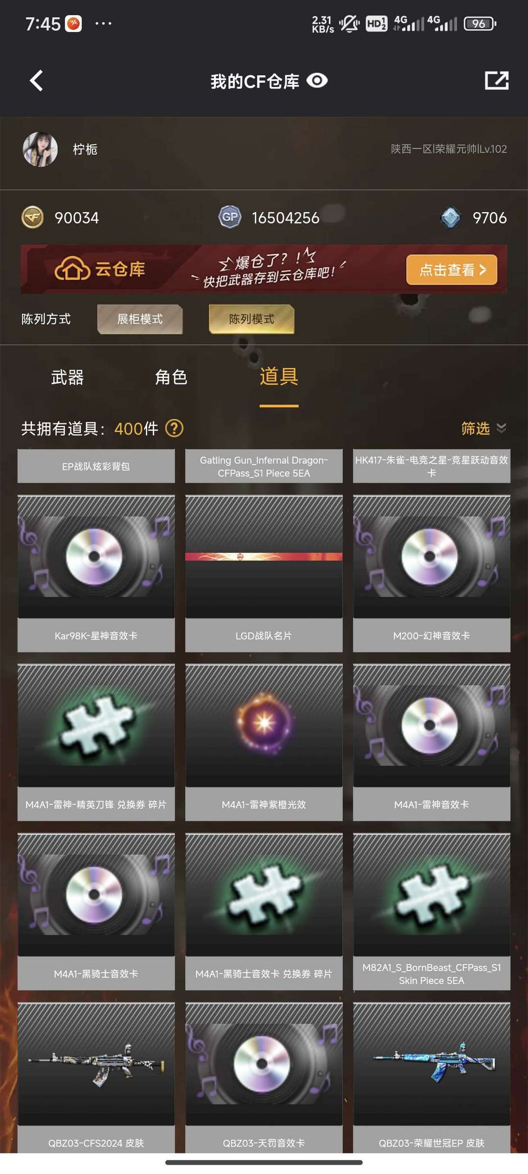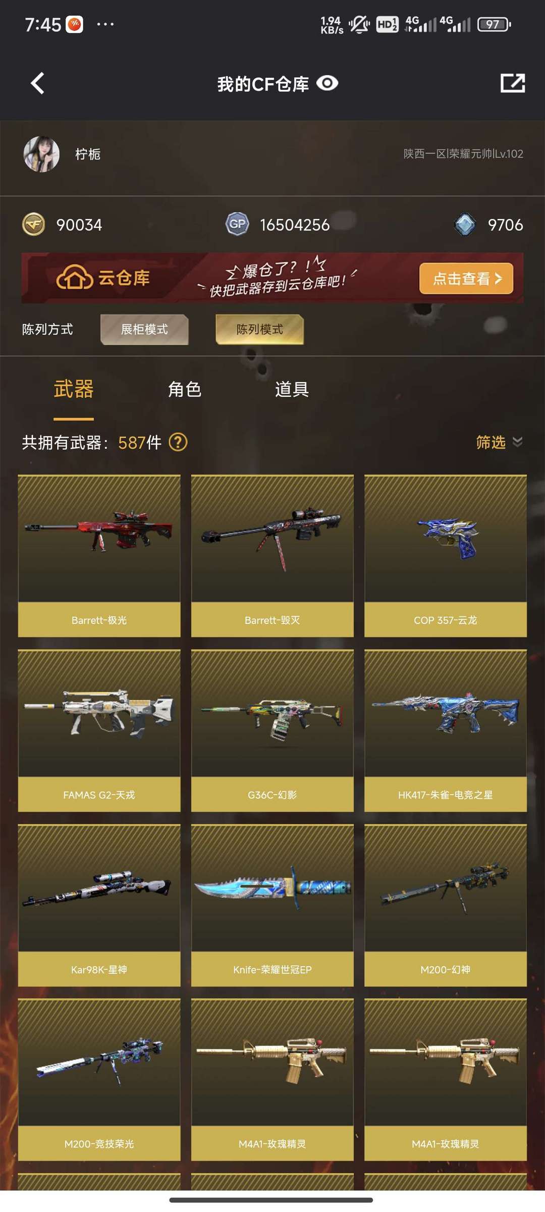 加利尔活动全套 g36c幻影+98vEp套装+6盘6烈蝴蝶+传说影煞+蝴蝶刀+满狙音效卡.