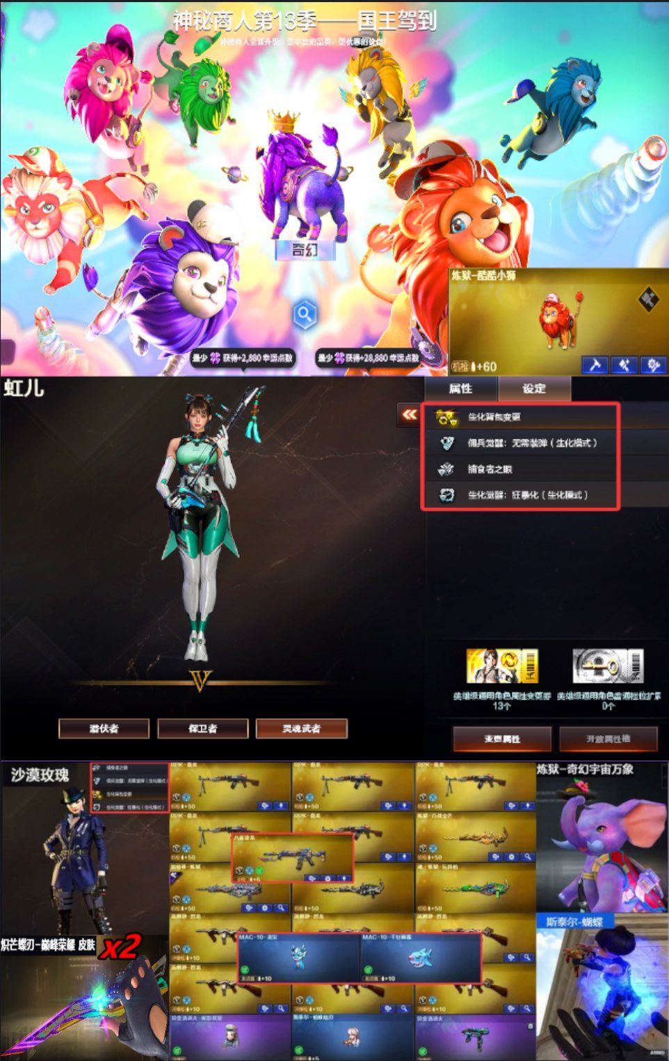 首发虹儿粉泡泡象6盘6烈蝴蝶枪娘(八面凌龙)生化酷酷小狮⭐2炽芒蝶刃巅峰皮丨白虎电玩蓝兔玄豹竞技荣光