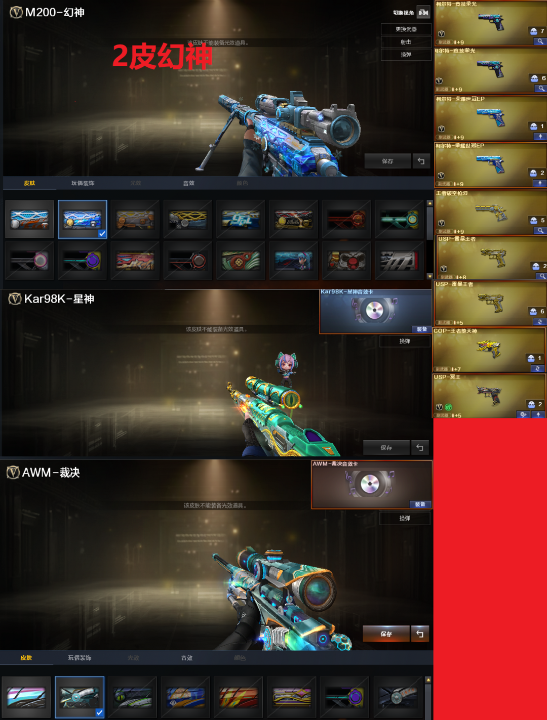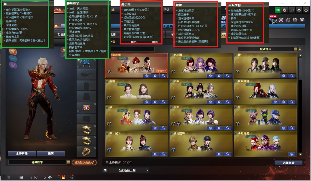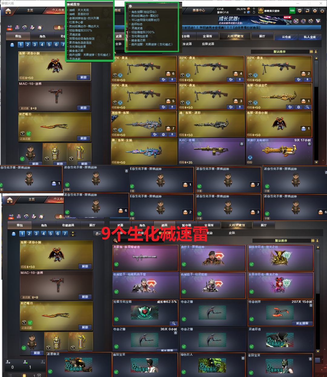 装备描述:排位:可以、、、、、、、、、生化四防全装(可以变更背包、查看僵尸血量)无需换弹、6盘、炼狱+音效、炼狱小刚、斯太尔蝴蝶、死亡之眼、MAC手枪、炽芒蝶刃、9个生化减速雷、超级对讲机、全部弹匣、、、、、、、、、、、、、、、、爆破四防:幻神2皮(EP荣耀、星火小队皮肤)、98K星神、M200竞技荣光、2个USP雷暴王者、USP冥王、COP王者堕天神、2个柯尔特EP荣耀、2个柯尔特竞技荣光、G36幻影、传说辉光、QBZ金色蔷薇、白虎、马枪、王者风神、炽芒蝶刃、、、裁决音效、幻影音效、星神音效、蔷薇音效、白虎音效、雷神音效、黑骑士音效、、、4套王者堕天神、4套雷暴王者、4套竞技荣光、、、生化四防(神威莲华、隼、嘉年华灵狐)爆破四防(雨墨、妮妮、关小雨、星际战将、司雨、研)