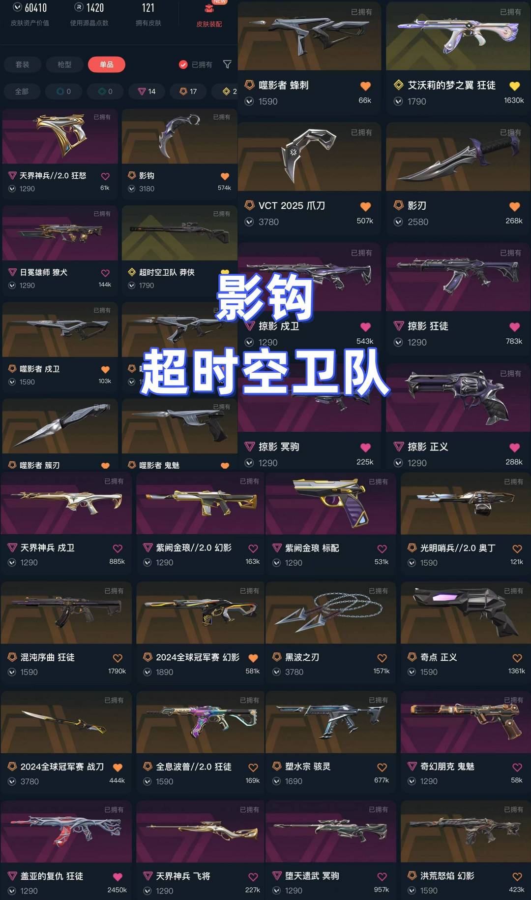 可排✅24冠军套超时空卫队⚡影钩VCT爪刀黑波之刃⚡嗜影者猫猫盖亚混沌掠夺⚡天界戍卫奇点正义紫金标配