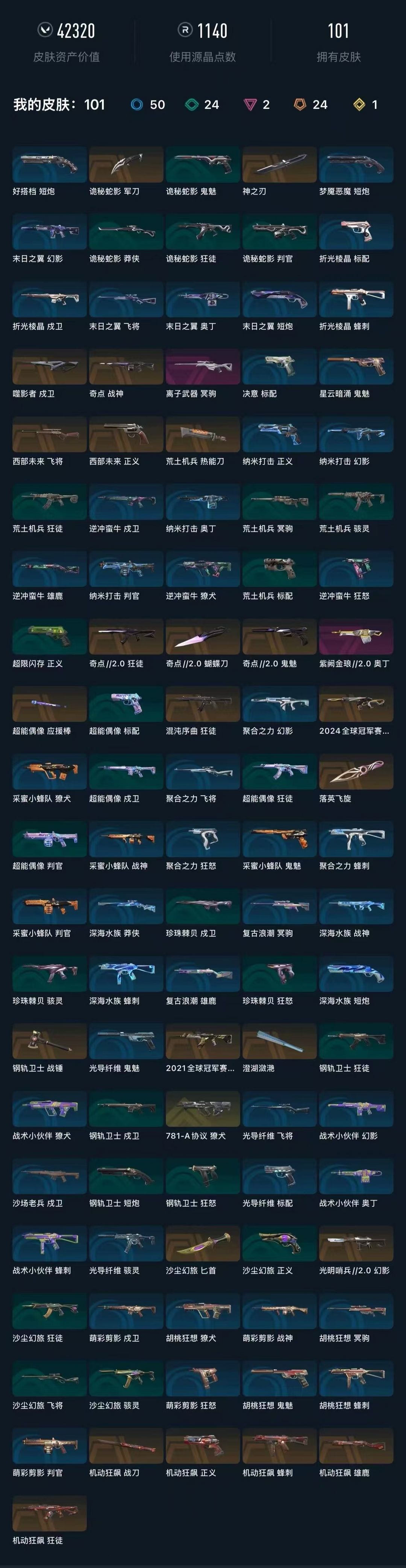 武器皮肤数量:102