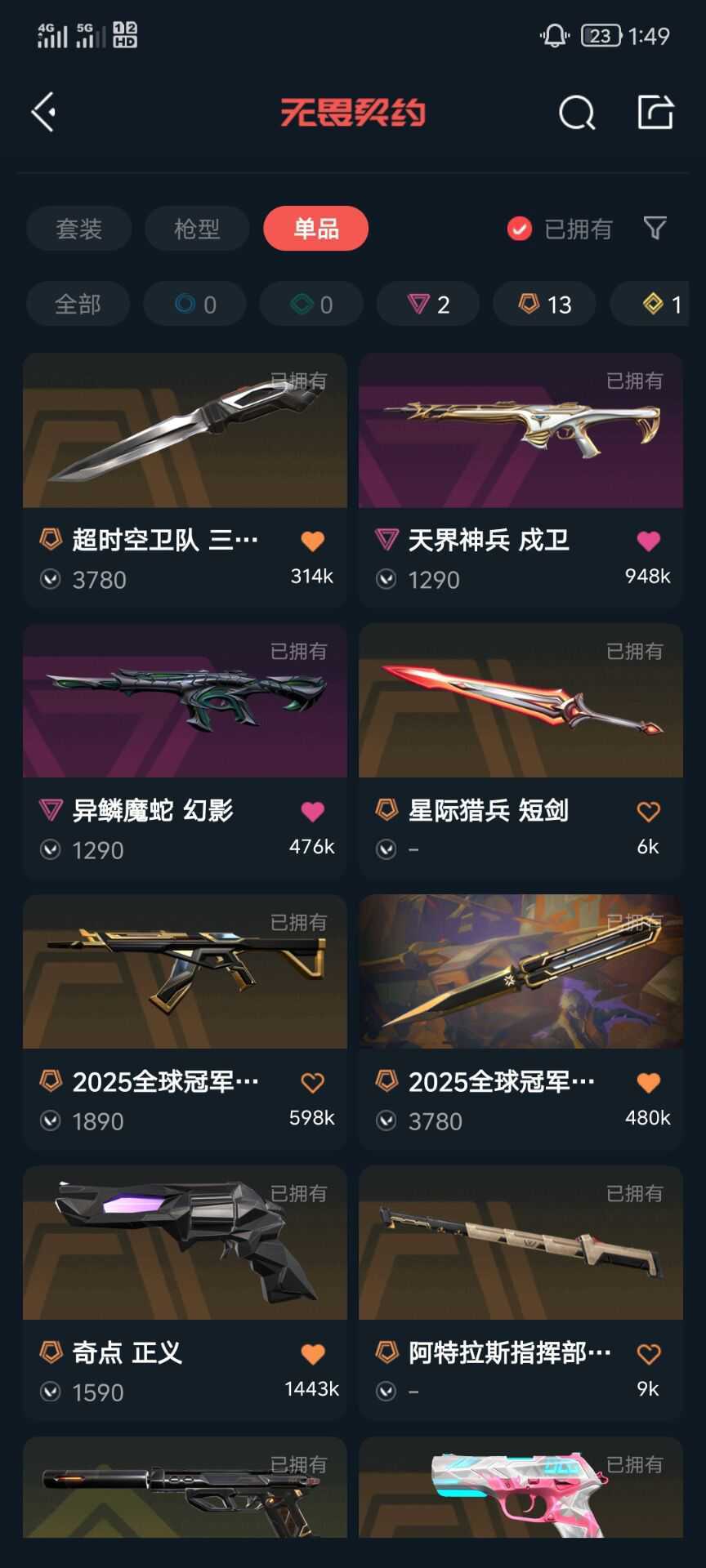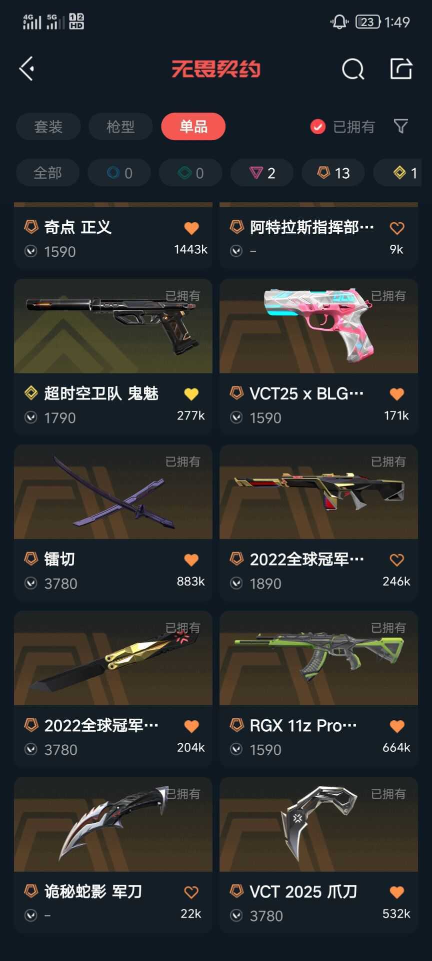 可排位 22+25冠军套装❤️必备vct爪刀❤️三棱刀❤️vct标配❤️镭切奇点正义❤️RGX狂徒