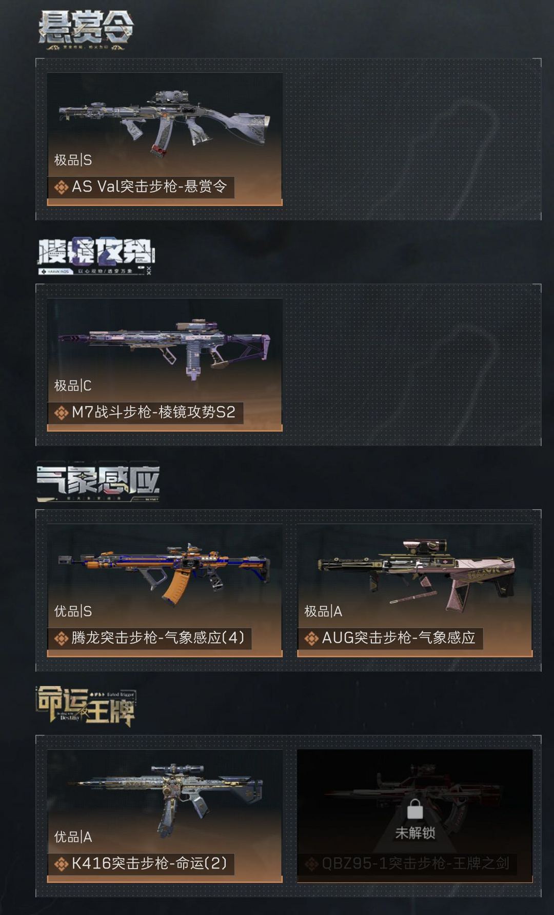 百万哈夫币 凌霄戍卫✨腾龙/Aug极品气象✨M7棱镜✨K416命运✨As悬赏令✨5红皮✨赤霄怜悯北极星信条暗星