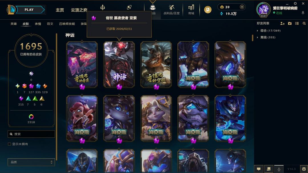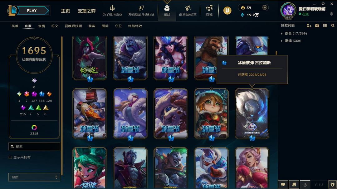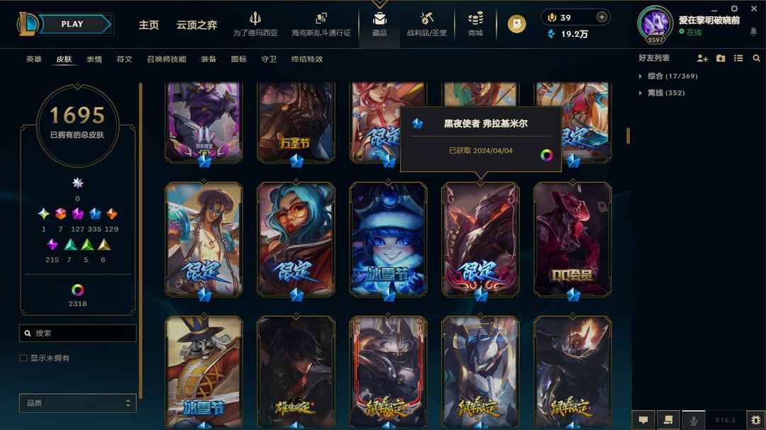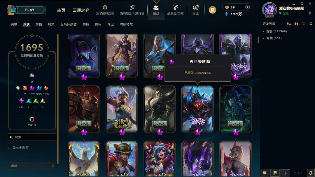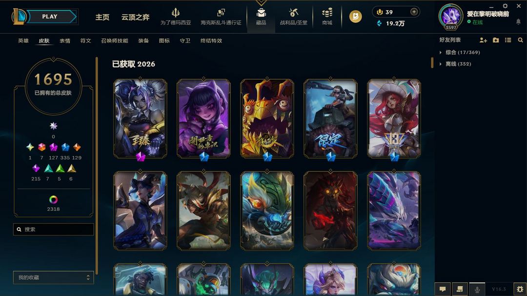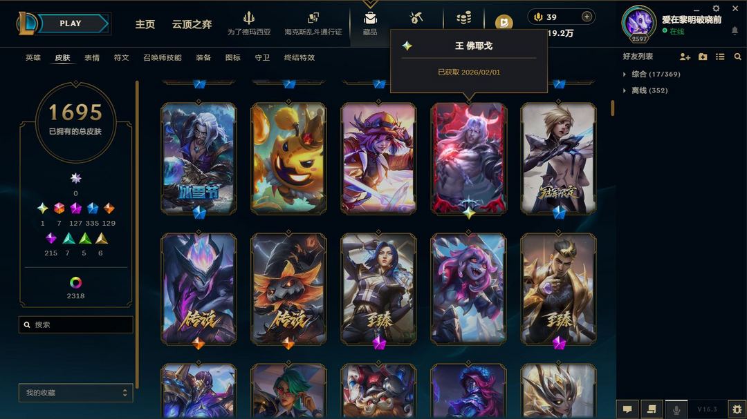 超值电一1700原皮2300炫❤8色龙瞎❤全至臻神话❤圣堂佛耶戈❤冰原核弹❤云顶水晶格温套