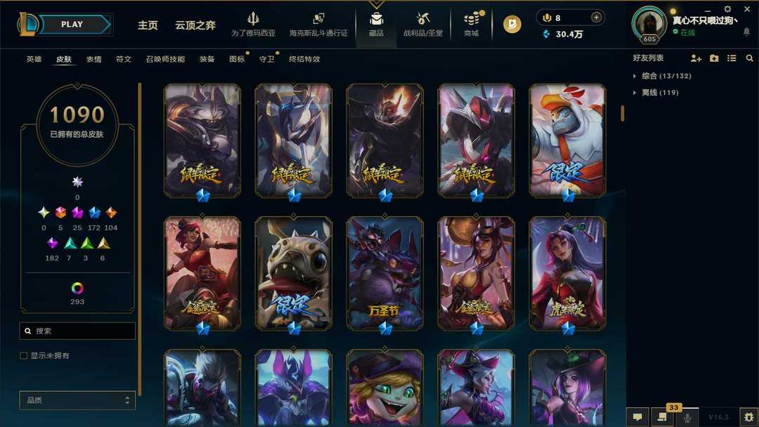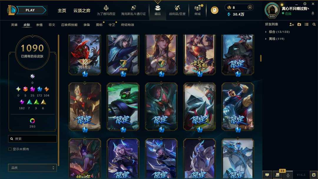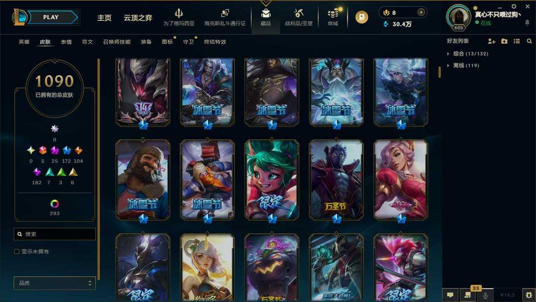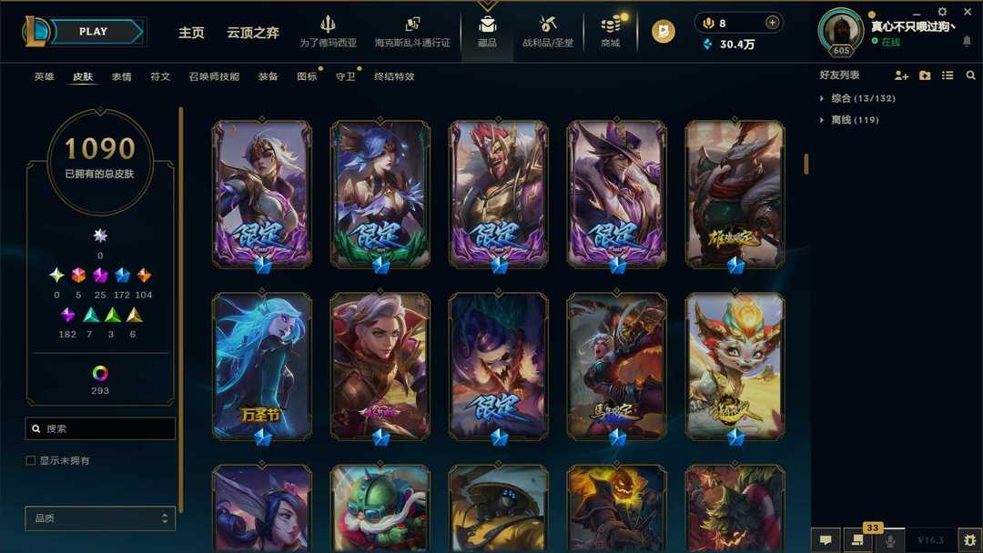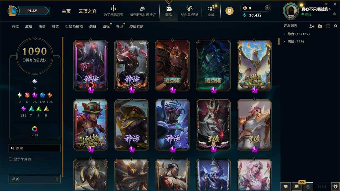 【泡泡】1400皮肤♥1090原皮♥神话幻想艾克♥暗星尊烬♥293炫彩♥33臻彩♥25神话♥172限