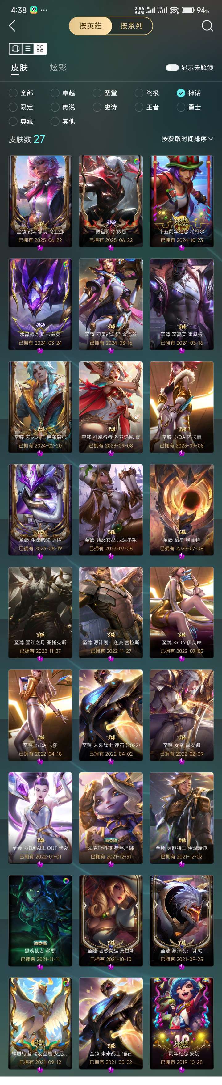 573皮肤27神话105限定57传说20臻彩全是好用的