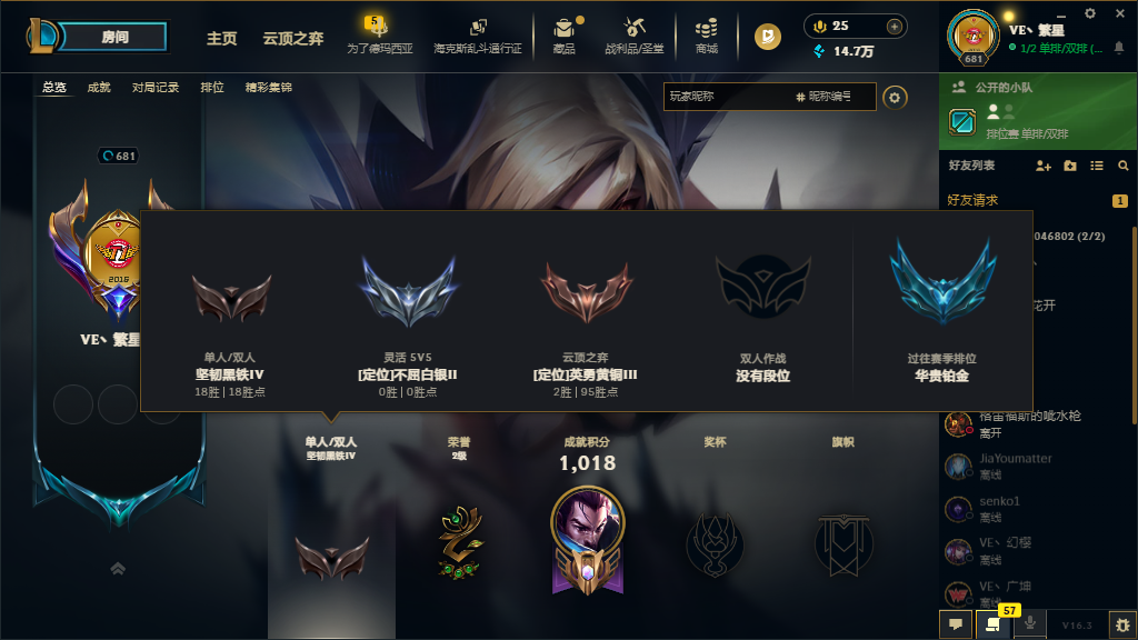 段位:686级 坚韧黑铁IV