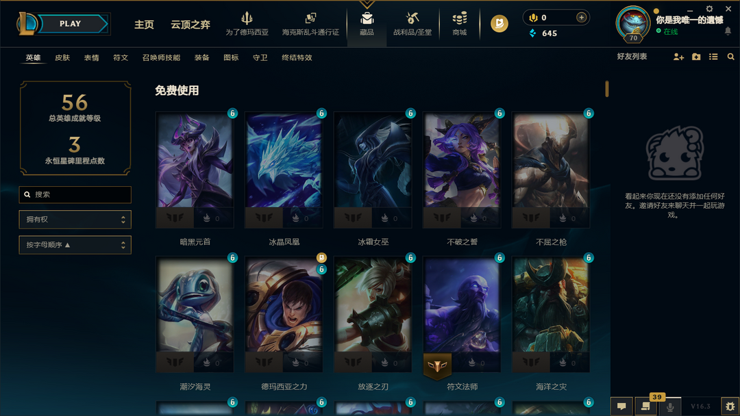 限制: 撤单率<60%才可租用此帐号英雄: 64