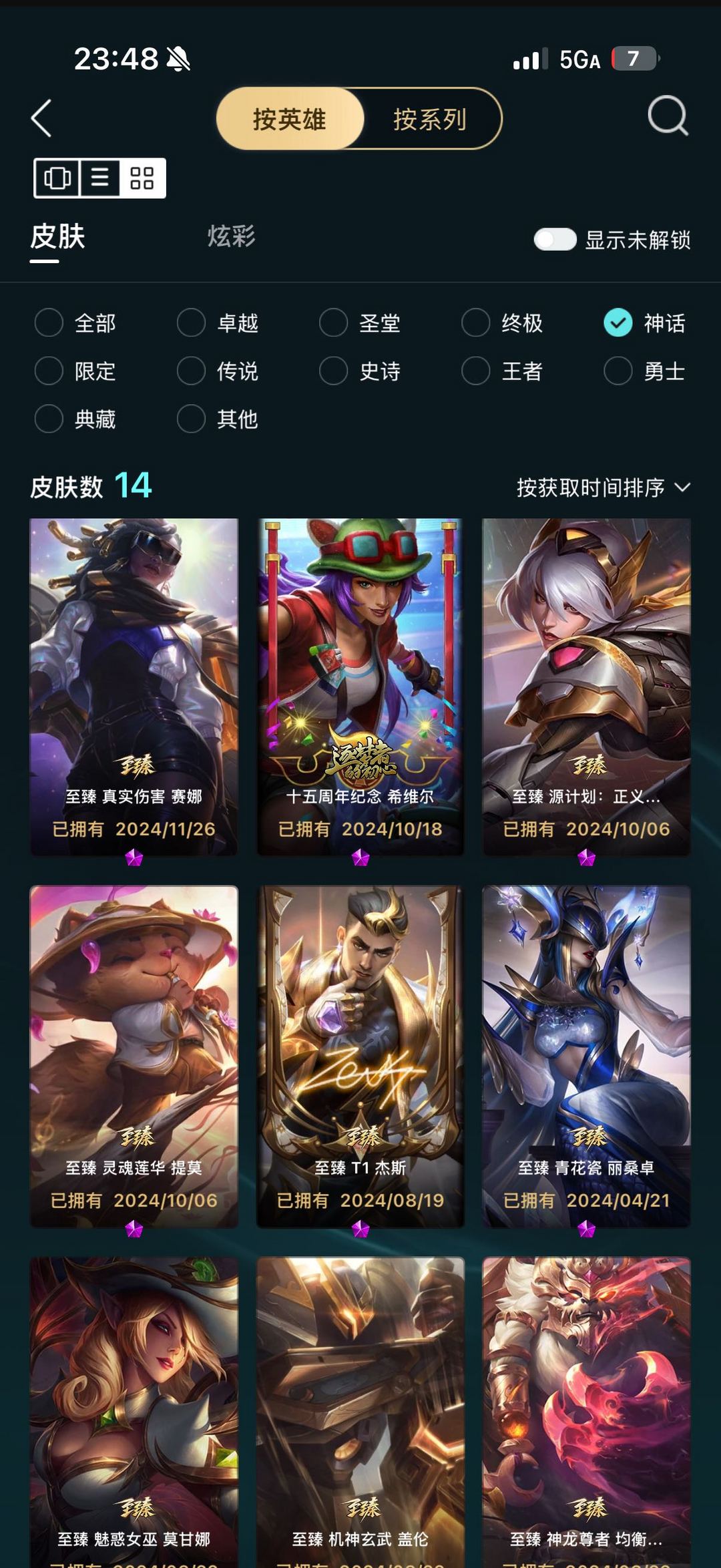 祖安 I 真实伤害艾克塞纳神龙尊者熊 15 个至臻北极星皎月斗魂莎弥拉至臻 T1 杰斯至臻青花瓷丽桑