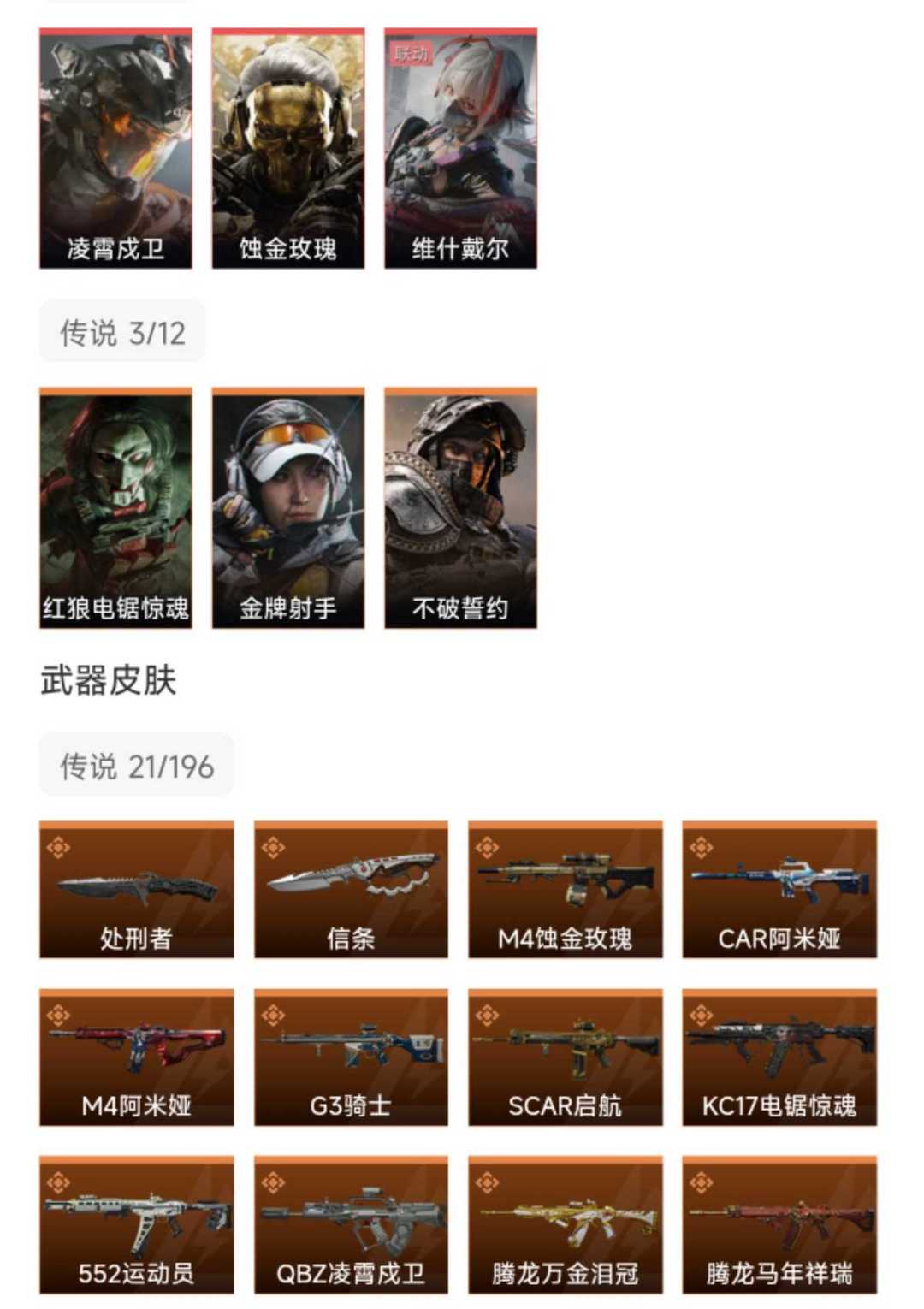 皮肤号 凌霄戍卫,蚀金玫瑰,信条,S8赛季3×3保险箱,21款传说枪皮