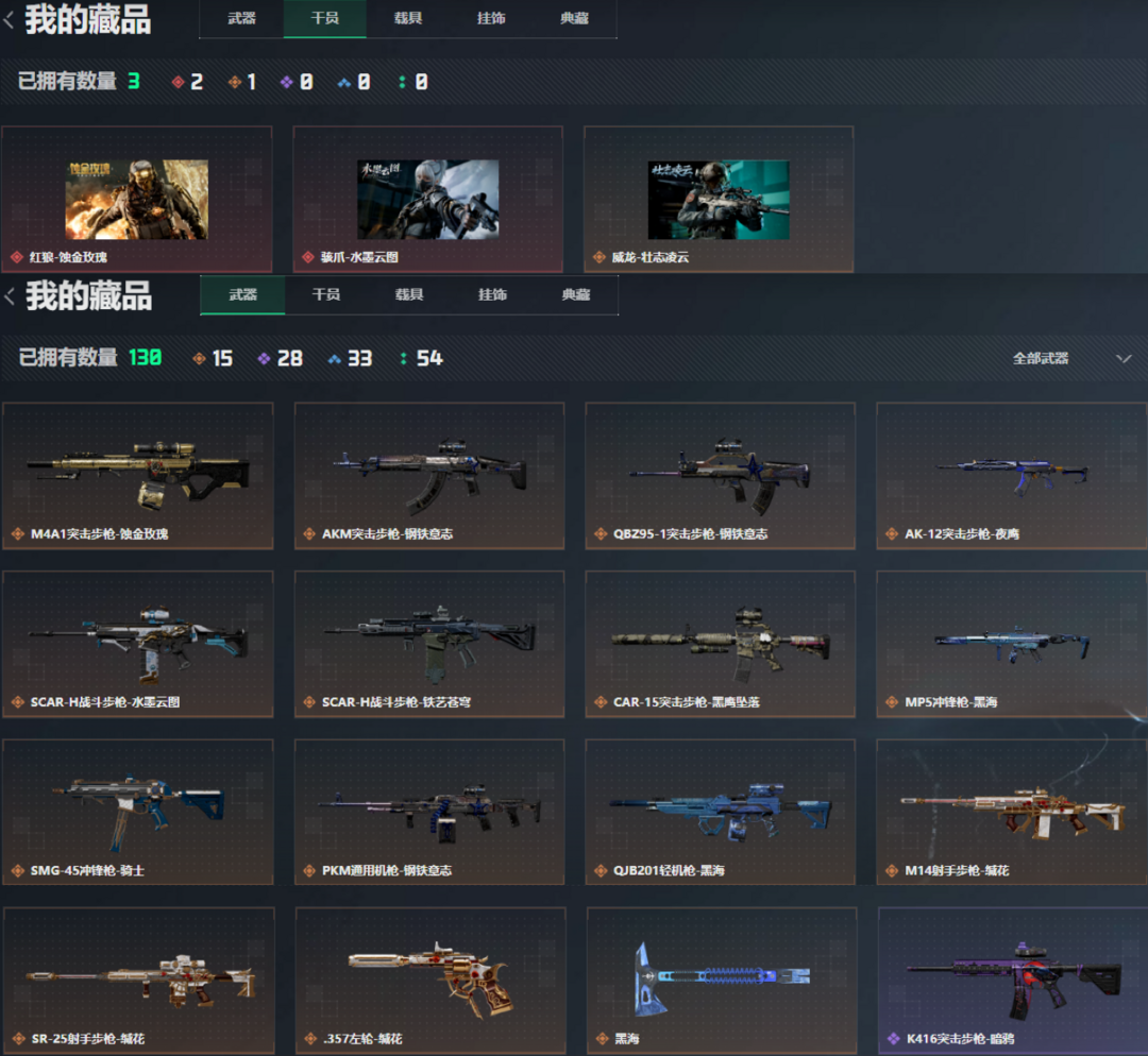 装备描述:黑海刀皮 双红皮 红狼-蚀金玫瑰 骇爪-水墨云图16金皮