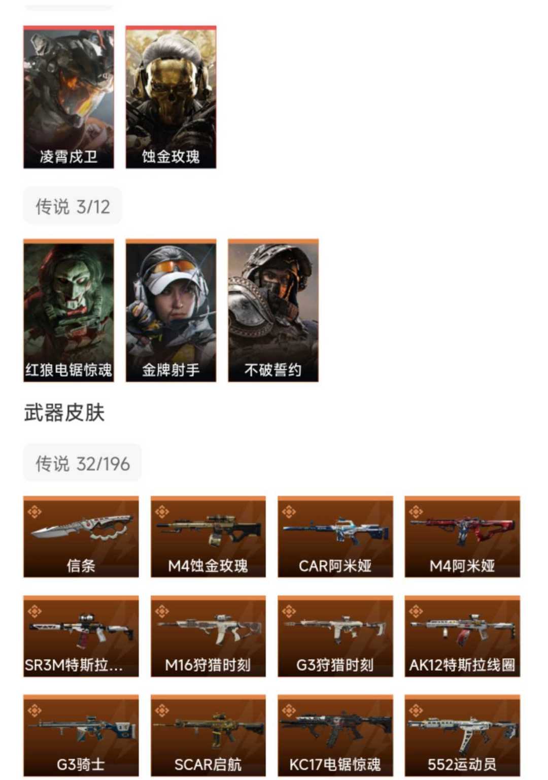 皮肤号 凌霄戍卫,蚀金玫瑰,信条,31款传说枪皮,s8赛季2×3保险箱
