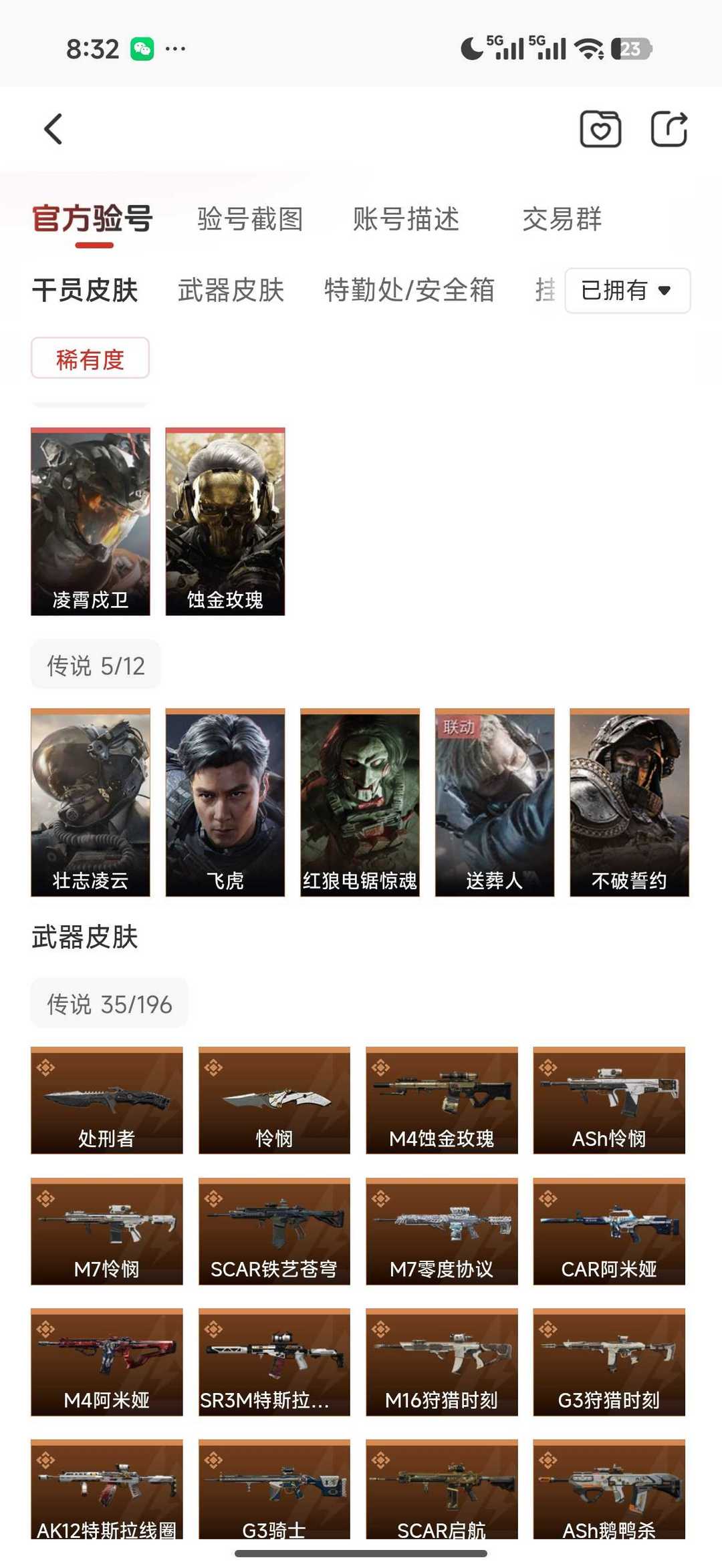 皮肤号 怜悯,凌霄戍卫,蚀金玫瑰,吴彦祖,35款传说枪皮,s8赛季2×3保险箱