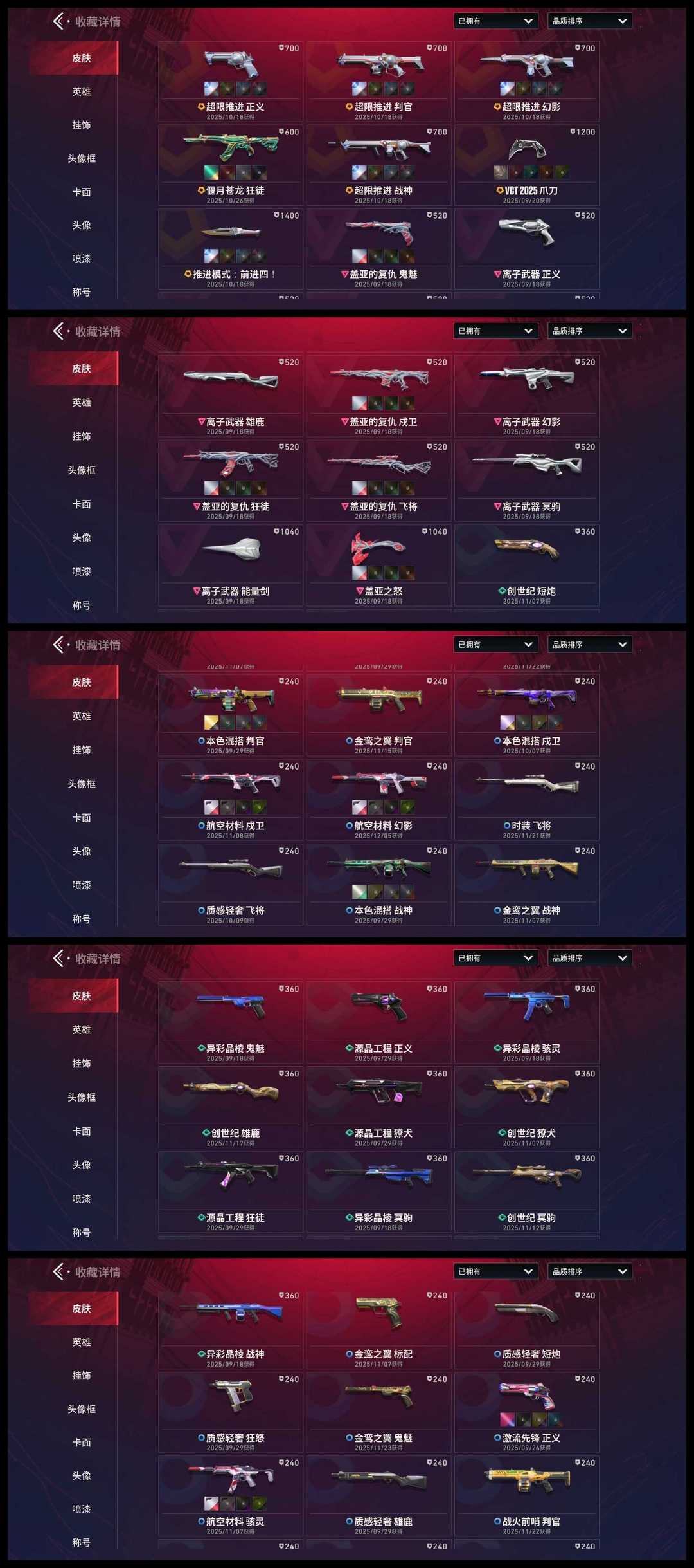 炫彩VCT爪刀满级✅超限推进套炫彩幻影满级✅盖亚套满级炫彩狂徒满级✅离子套满级✅苍龙狂徒满级