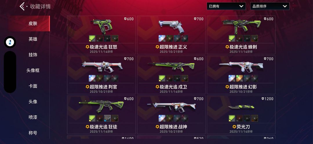 10传奇2系列!急速光追,超限推进!萤光刀,超限军刀!6满级超限推进判官,极速光追戍卫,超限幻影