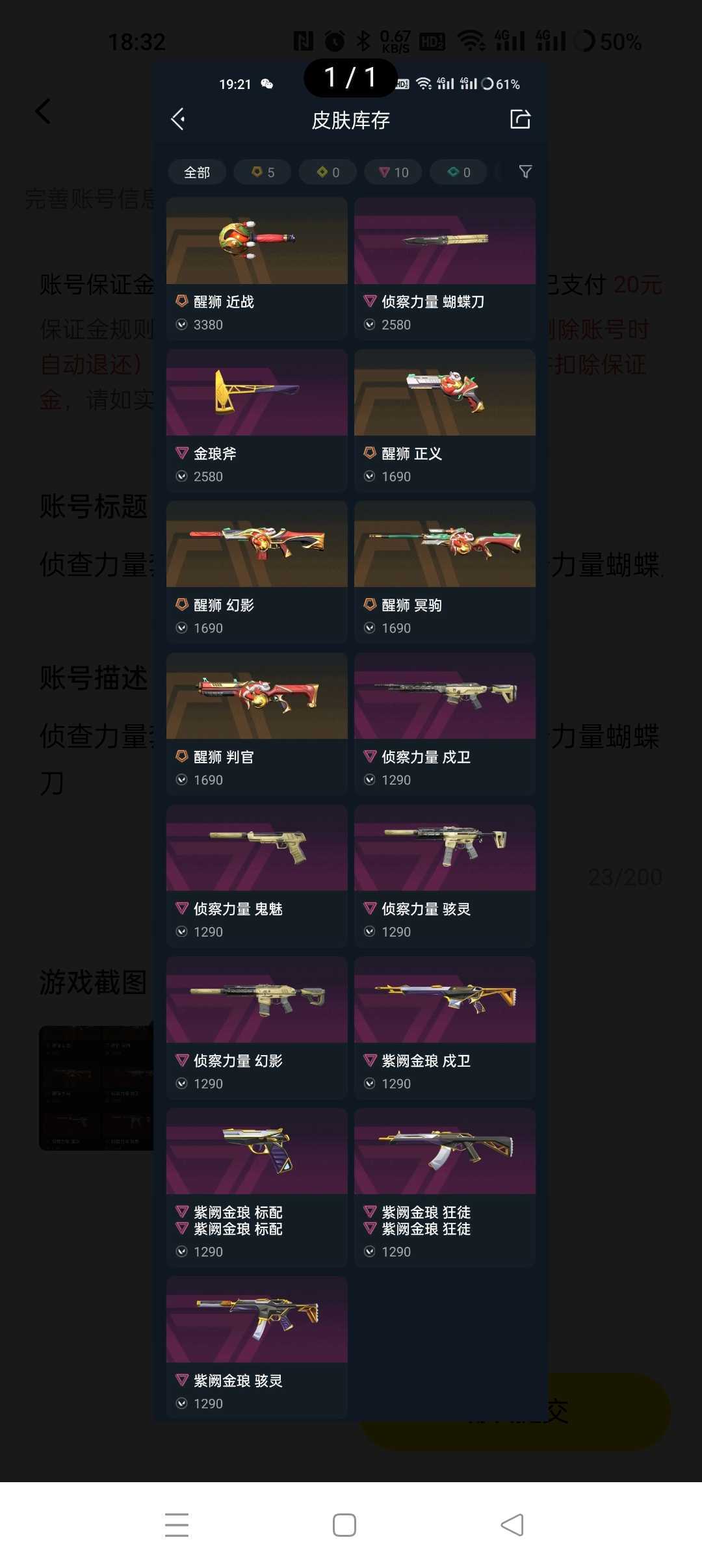 侦查力量套✨醒狮套✨紫阙金琅套✨侦查力量蝴蝶刀