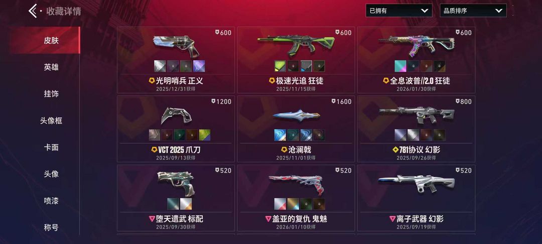 VCT爪刀 沧澜戟 金角扇 光明哨兵正义 极速光追 全息波普/2.0盖亚狂徒 781协议