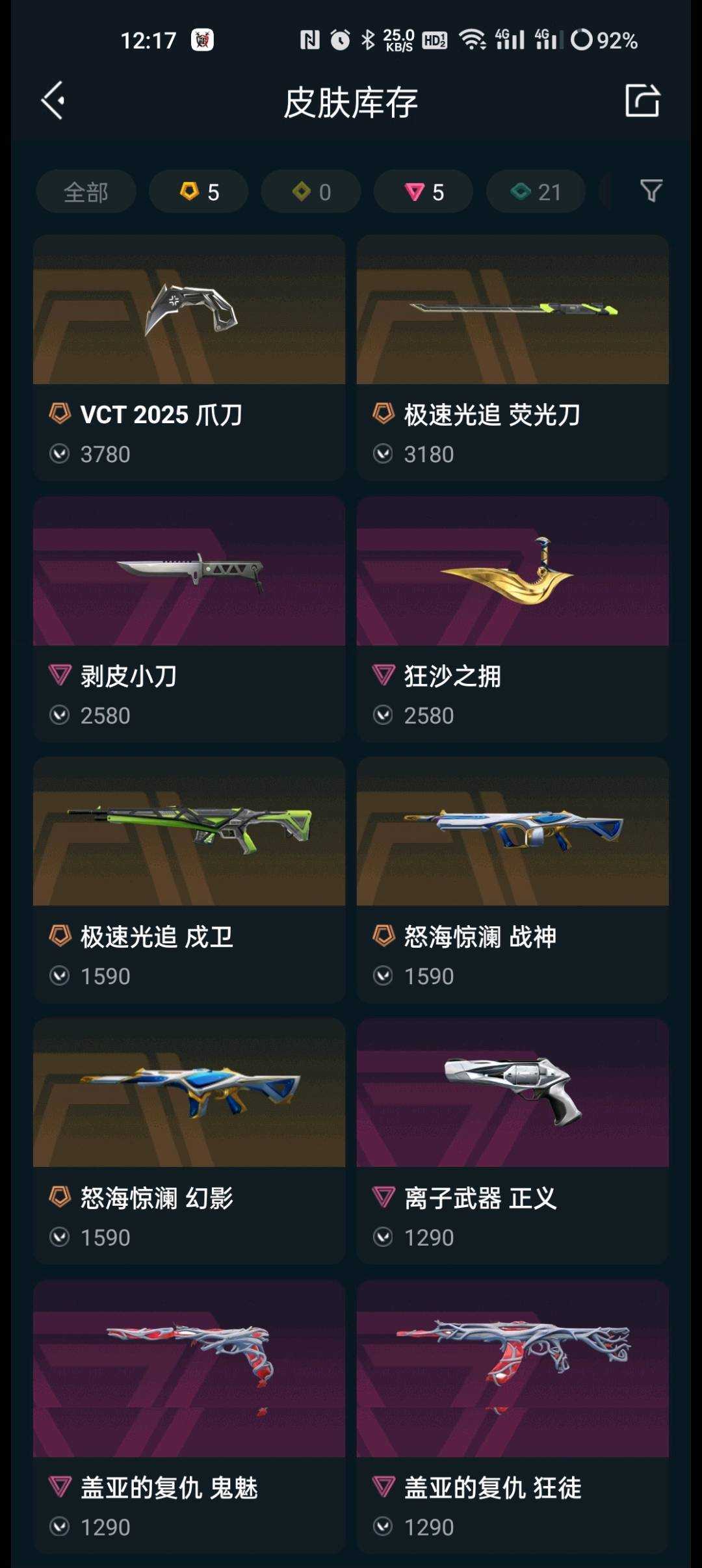 VCT爪刀⭐剥皮小刀⭐极速光追荧光刀⭐狂沙之拥⭐盖亚狂徒鬼魅⭐怒海惊澜幻影战神⭐极速光追戍卫离子正义