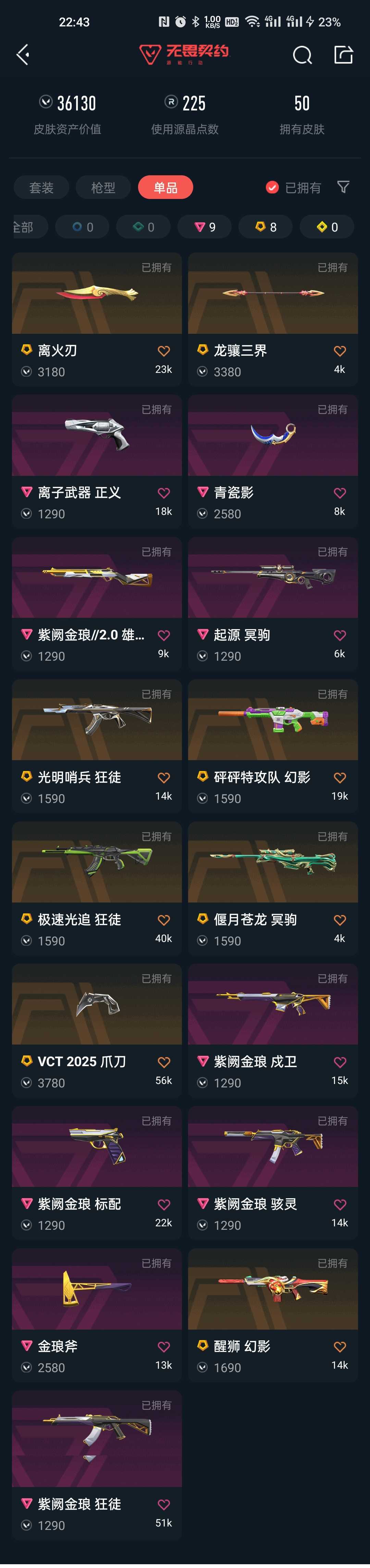离火刃⚡VCT爪刀⚡青瓷影爪刀⚡紫金套全⚡马年刀皮龙骧三界⚡光明极速狂徒⚡醒狮砰砰幻影⚡起源苍龙冥驹
