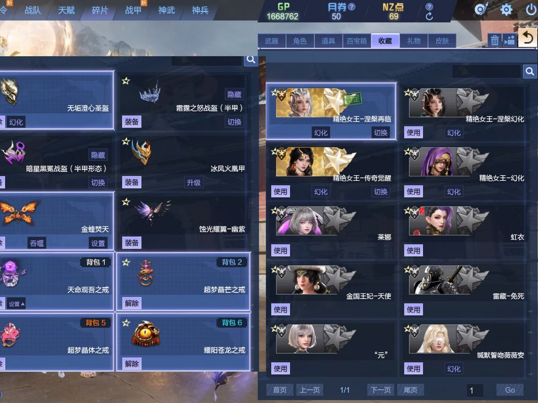解锁看描述⭐涅槃女王莱纳天命观吾神御天耀10+10蚀日天蝰星寰山海全皮9+9双精灵四臂铠望舒顶配