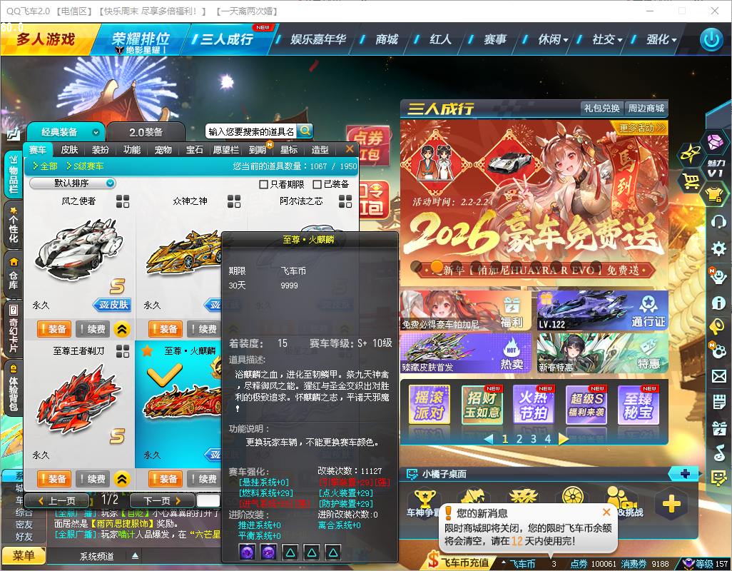 游戏区服:QQ飞车-电信-电信