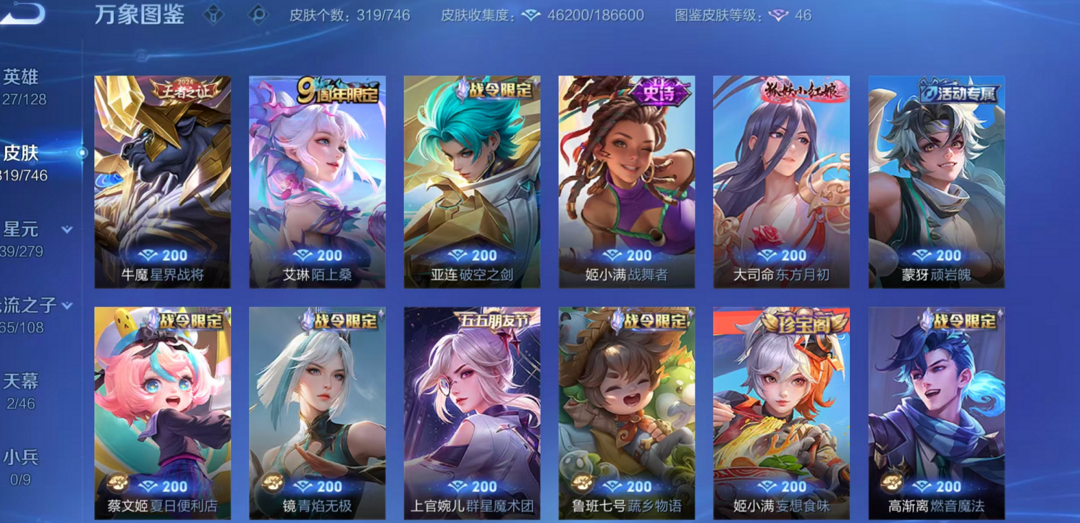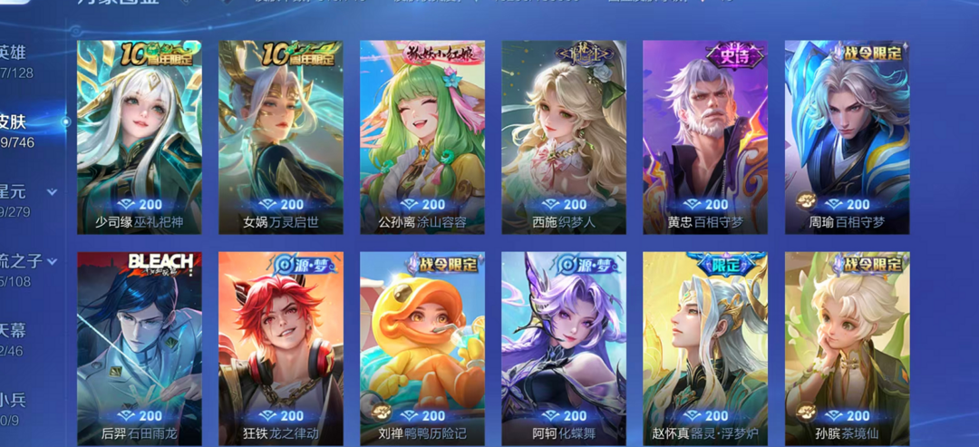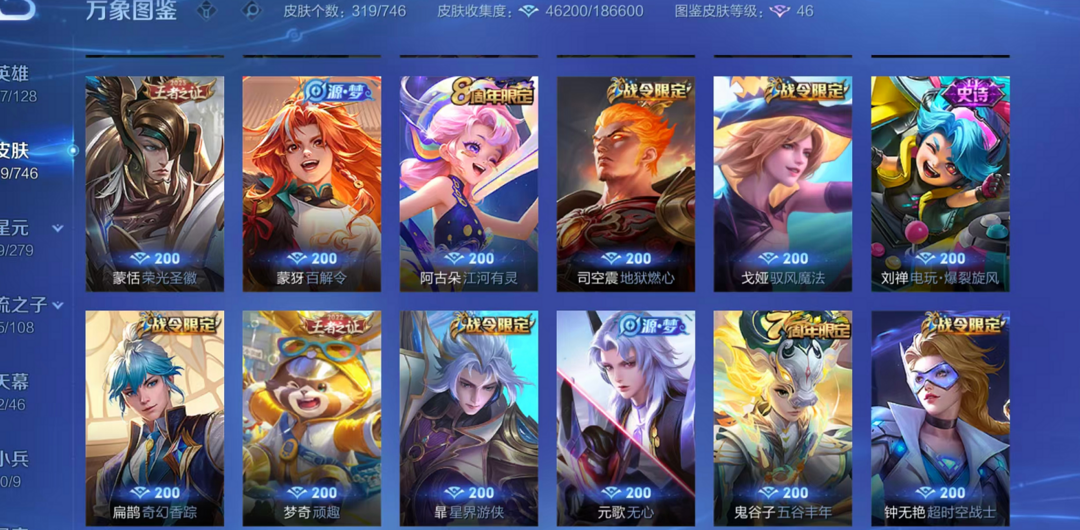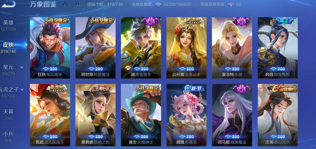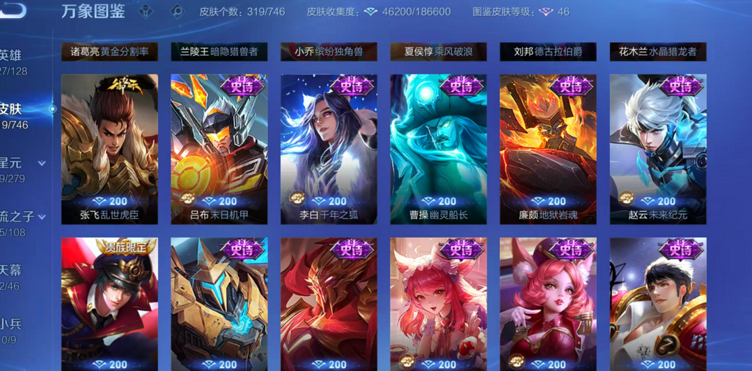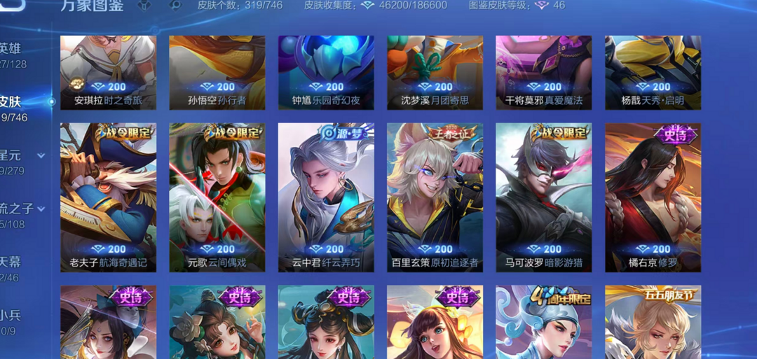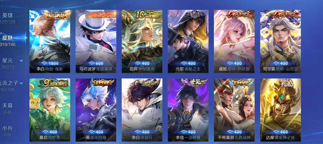 1折包天〓微区320皮12月历史金牌元歌〓李白典藏鸣剑曳影怪盗基德诡秘之主〓蛇年虞姬司空震逐花归海