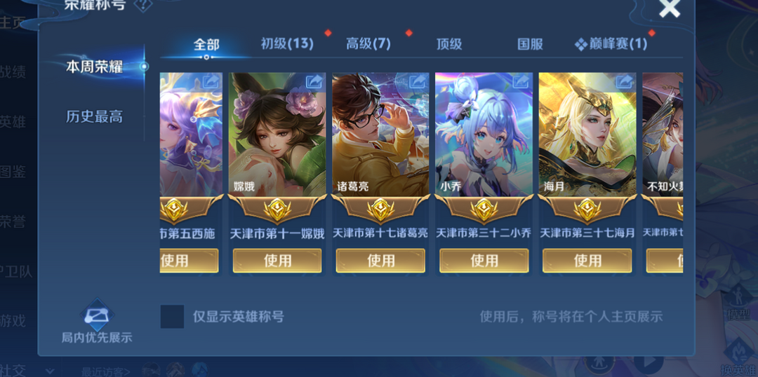 禁止巅峰.112段中路.巅峰2143无框⭐️6省标:西施小乔嫦娥海月火舞诸葛⭐️女号