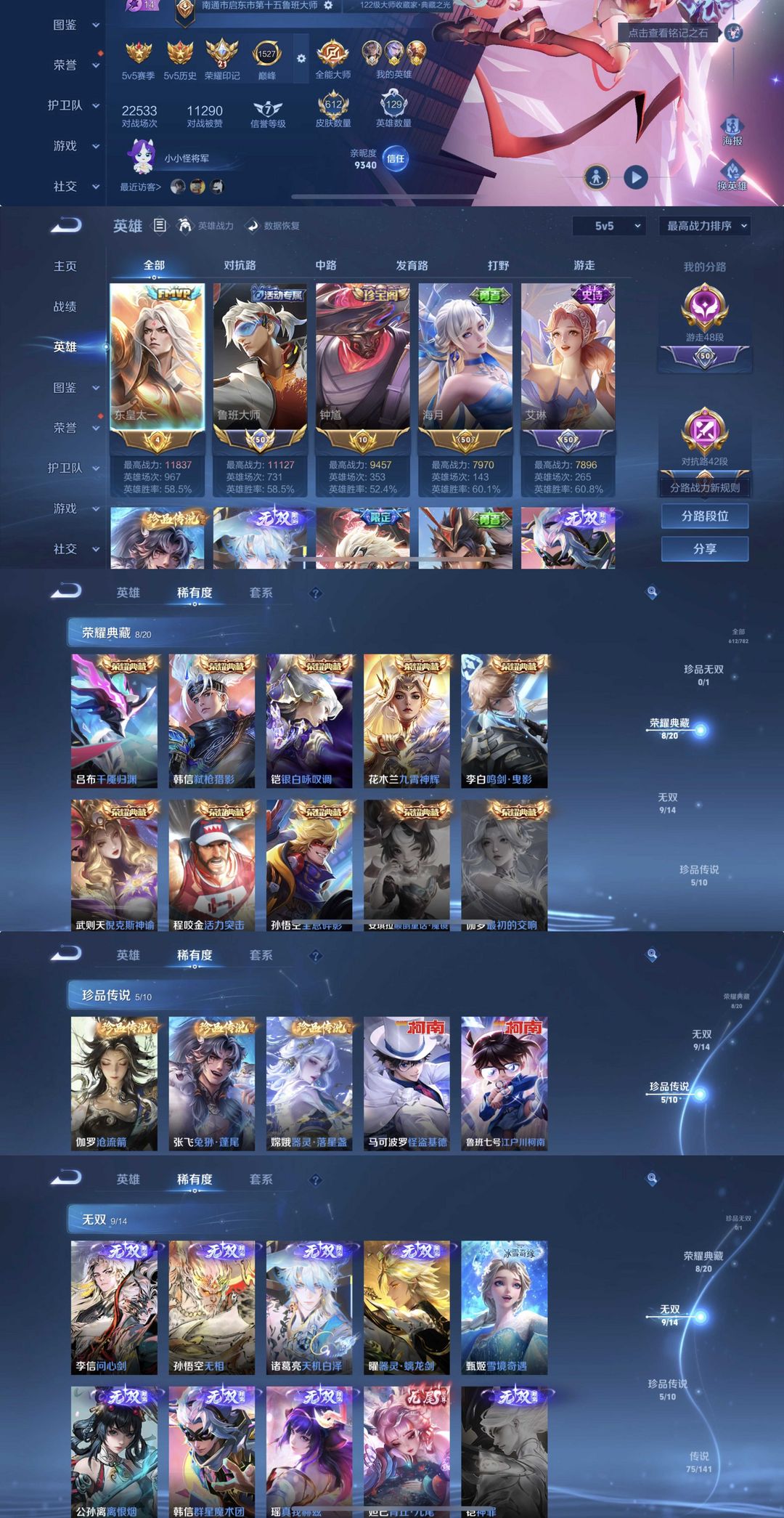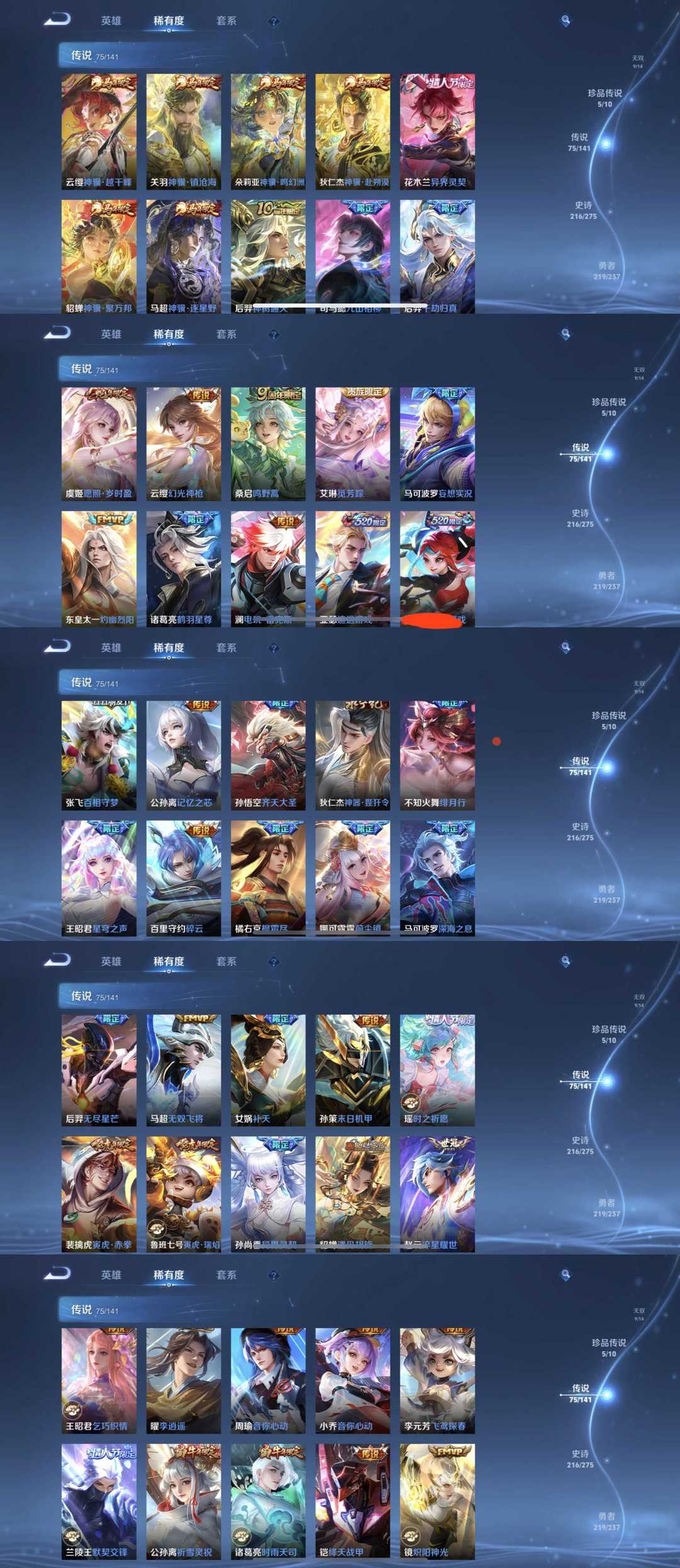 9无双5珍品75传说✨国服鲁大万战东皇✨问心剑苍流箭✨全马年千魇归渊✨无相天机白泽✨九山相柳兔狲蓬尾