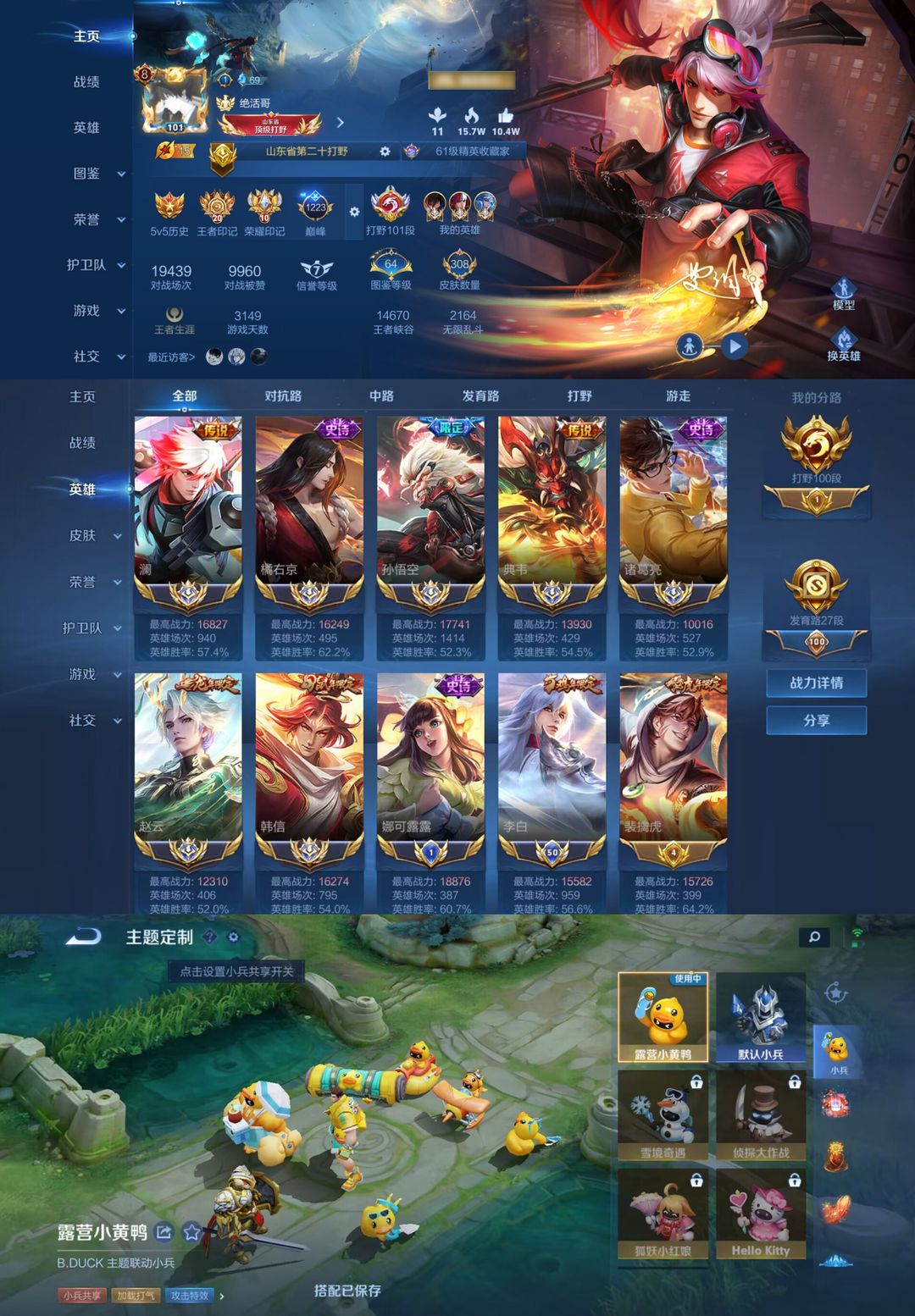 在榜百段打野王❤7大历史国服澜韩信孙悟空诸葛亮赵云橘右京❤新小兵露营小黄鸭