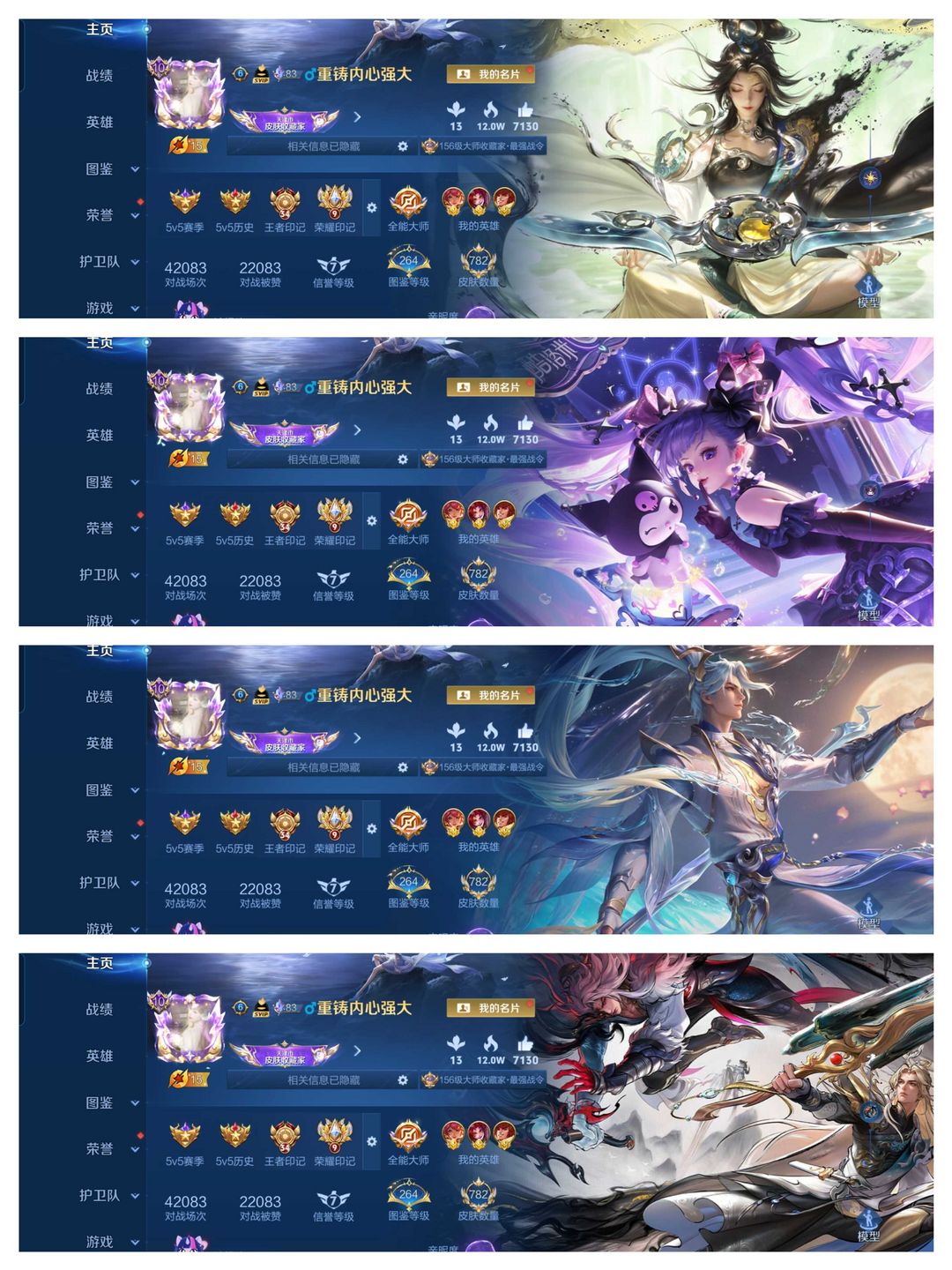 新皮全秒782满皮肤♥李信无双问心剑安琪拉荣耀典藏♥马年限定♥貂蝉慕夏满典藏满无双
