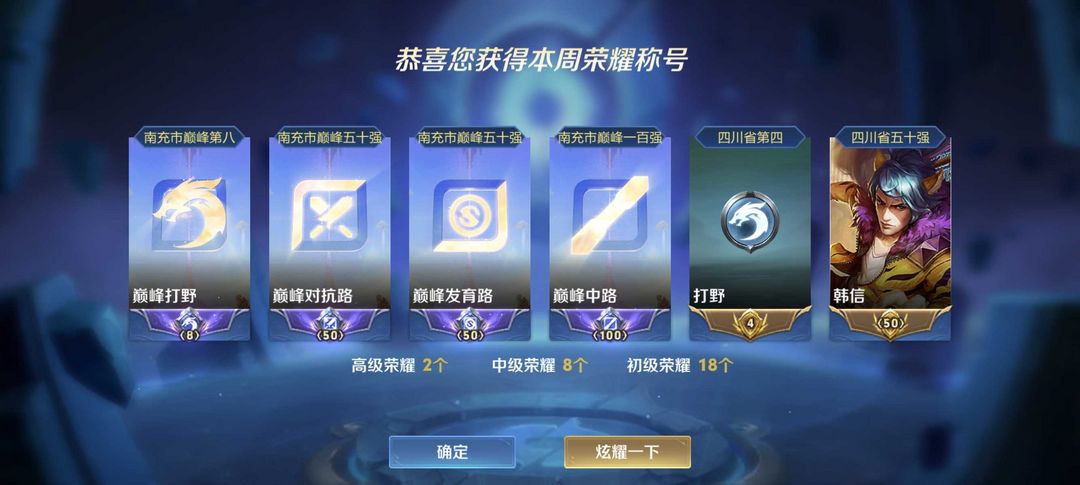 本周在榜省韩信省打野⭐巅峰1600⭐80段打野⭐历史大国服镜李白猴子凯