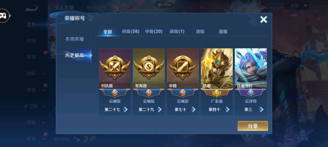 游戏区服:王者荣耀-QQ安卓-QQ账号