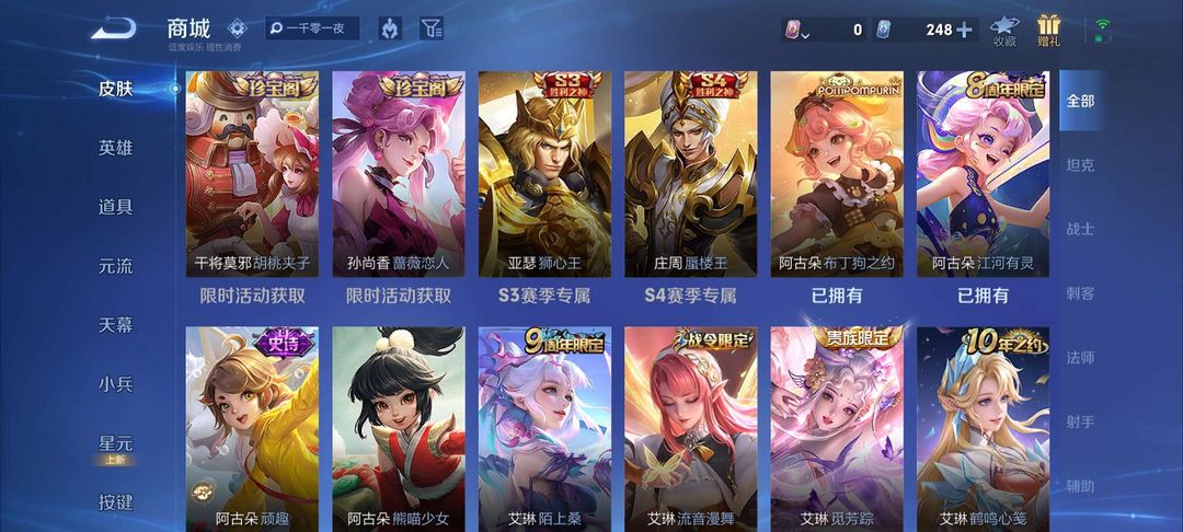 无双 v10 全皮肤⚡️历史巅峰万强双国服射手在榜发育路✨满典藏满珍品满无双✨貂蝉馥梦繁花小兵典藏✨