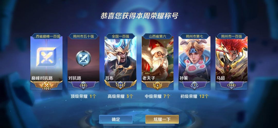 巅峰闪电框⭐️小国吕布在榜⭐️省6老夫子榜⭐️ 巅峰分2052⭐️可排位禁巅峰