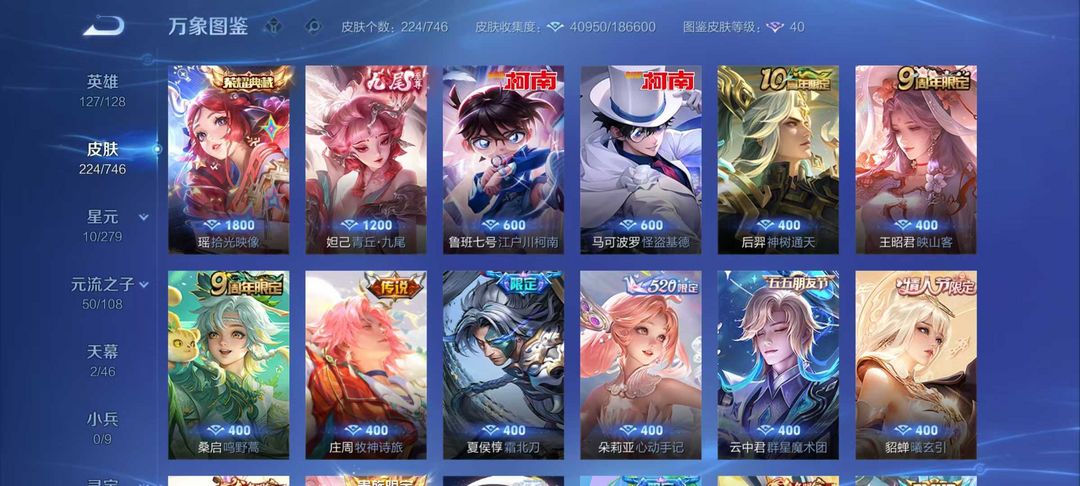 限制: 租号5次及以上 | 撤单率<30%才可租用此帐号装备描述: 瑶拾光映像 妲己青丘·九尾 鲁班七号江户川柯南 马可波罗 怪盗基德 后羿神树通天 王昭君映山