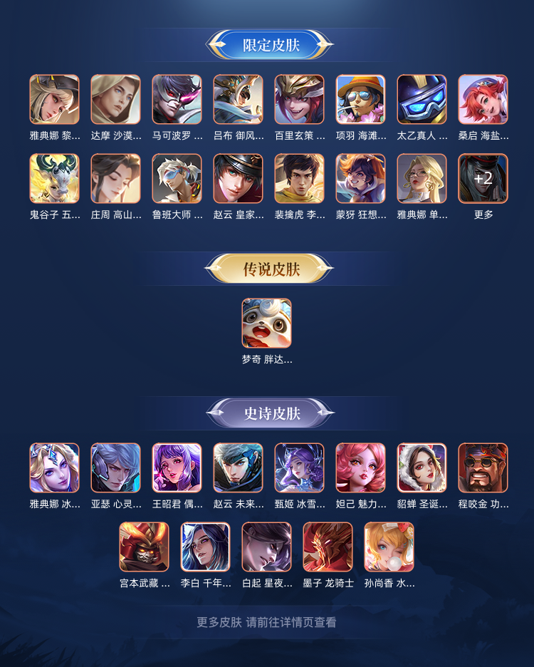 国服梦奇 传说皮: 胖达荣荣 限定皮: 李小龙,御风骁将,白虎志,高山流水