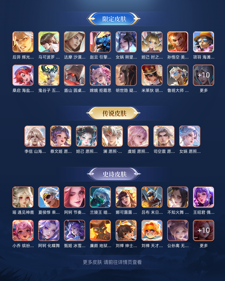 装备描述:皮肤数: 268 传说皮: 久胜战神,山海·炽霜斩,灼幽烈阳,鹤归松栖(云缨),惊梅引,鲁班七号-时之奇旅,澜逐花归海,乘龙·淬吴钩 限定皮: 李小龙,游园惊梦,梁祝,引擎之心,辉光之辰,时之彼端,美猴王,默契交锋-花木兰,五谷丰年,山海·玄木吟,逐霄战戟,愿照·千秋盛,愿照·众生和,愿照·山河定,愿照·岁时盈,愿照·福禄聚,愿照·九州拓