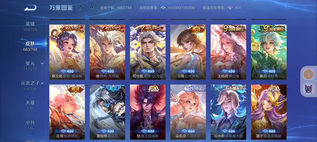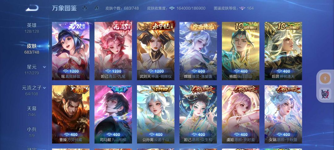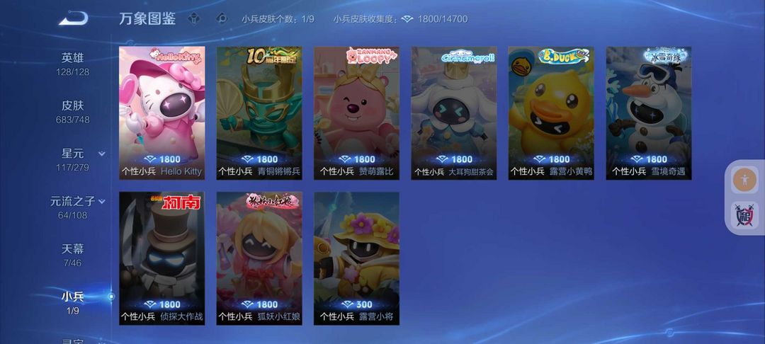 680皮肤❤️满水晶至尊女号❤️万战瑶妹多女金标❤️683皮肤❤️满水晶kitty小兵❤️9无双皮❤