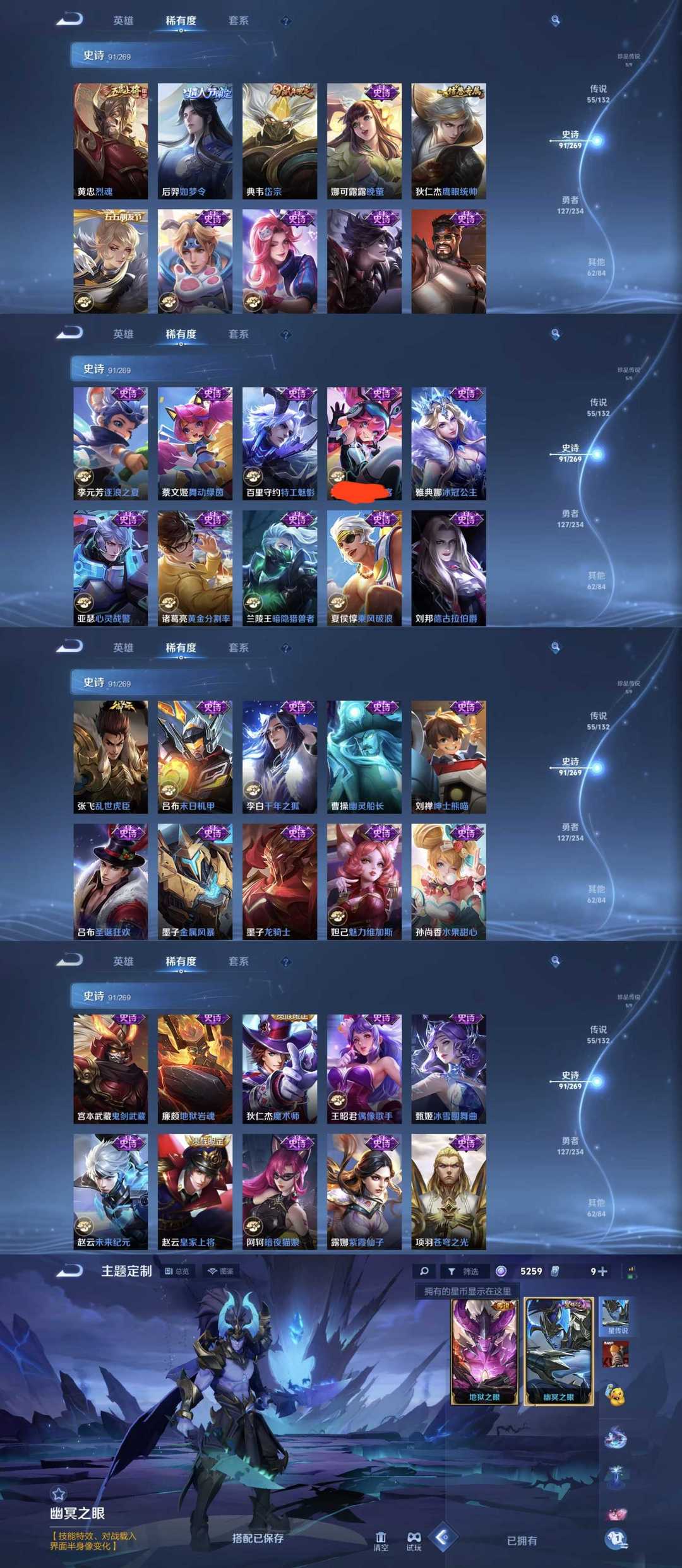 限制: 撤单率<49%才可租用此帐号装备描述:时间到了还登录白玩或者顶号全部改密拉黑处理永不解除,顶号机器会秒禁玩改密,顶号不仅拉黑还没得玩,赚三两块不容易,请理解谢谢。 ❤❤❤❤❤❤❤❤❤❤❤❤❤❤❤❤❤❤❤ 请勿开挂,挂机,送头,骂人,撤单后游戏等如有违规永久拉黑永不解除。 重置二级密码不要费劲了,号主每天都会上号查看,多行不义必自毙,人在做天在看,多做好事多自律,少做缺德事。 该号英雄127个皮肤351个,典藏10个,无双1个,珍品传说5个,星传说1个,传说55个,史诗91个,祝您游戏愉快~