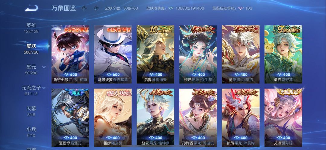 v10❤️507皮肤❤️12典藏❤️70传说❤️5星传说❤️珍品传说怪盗基德❤️全息碎影