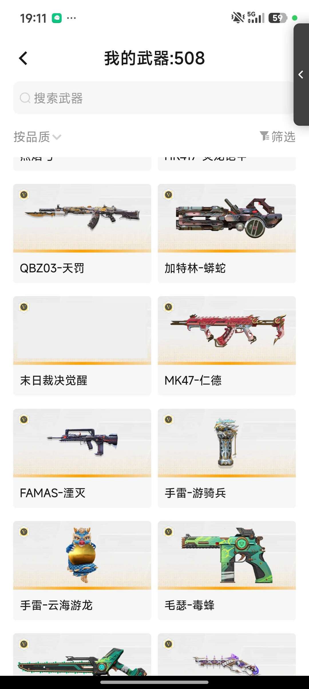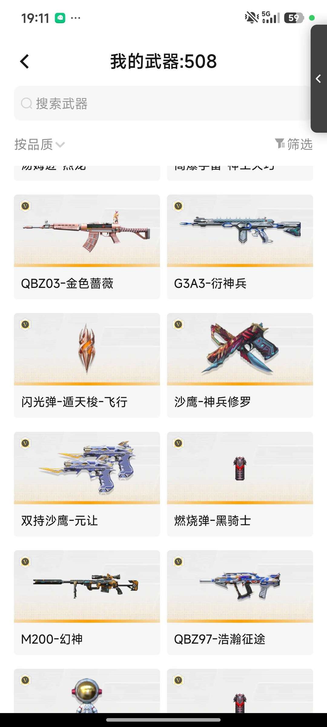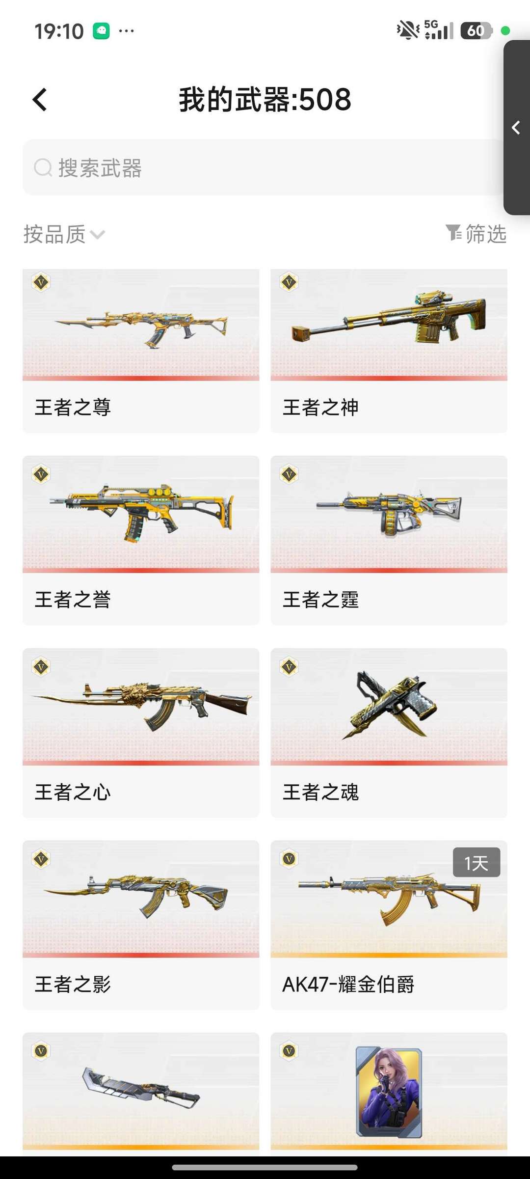 508把神器,V七,十几把王者武器。想玩的武器基本上都有
