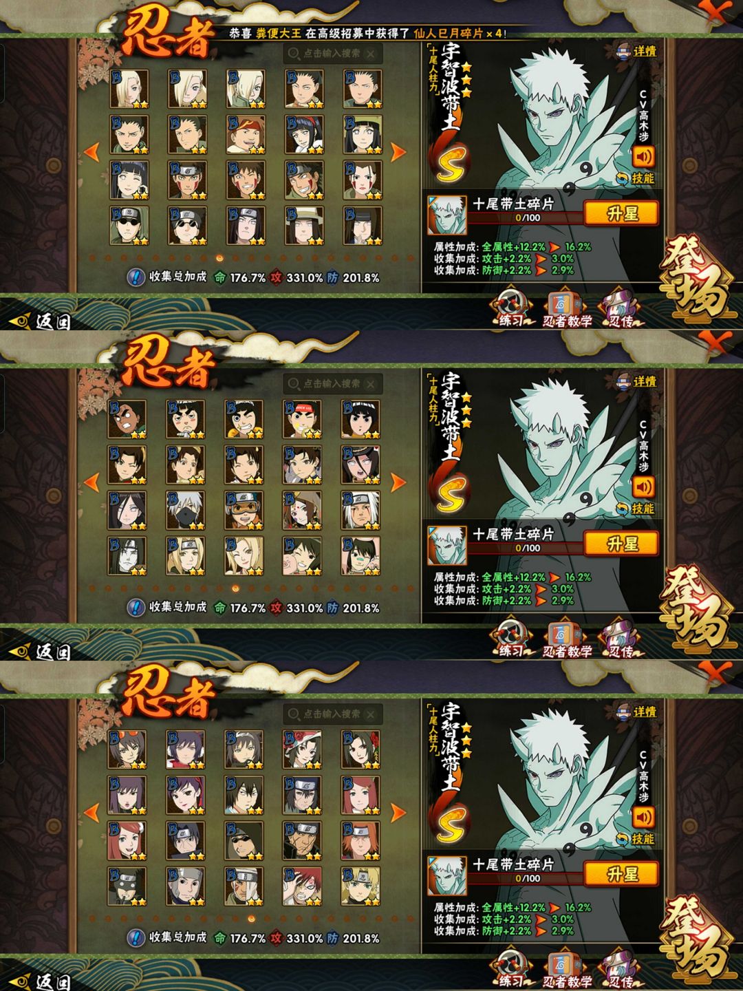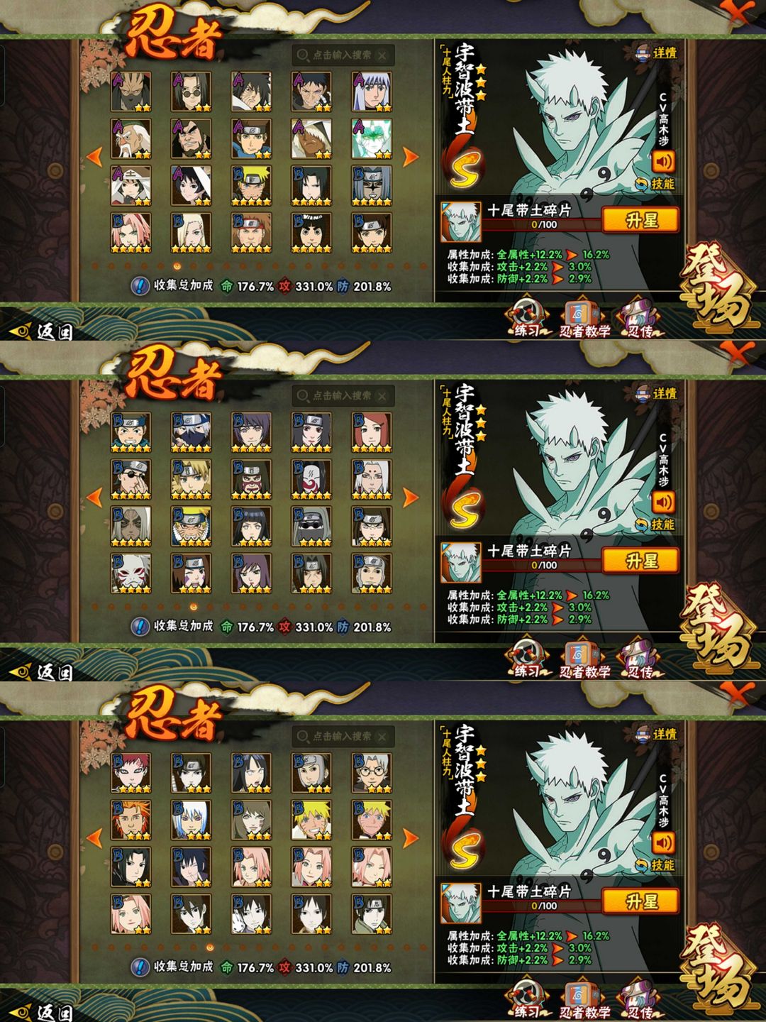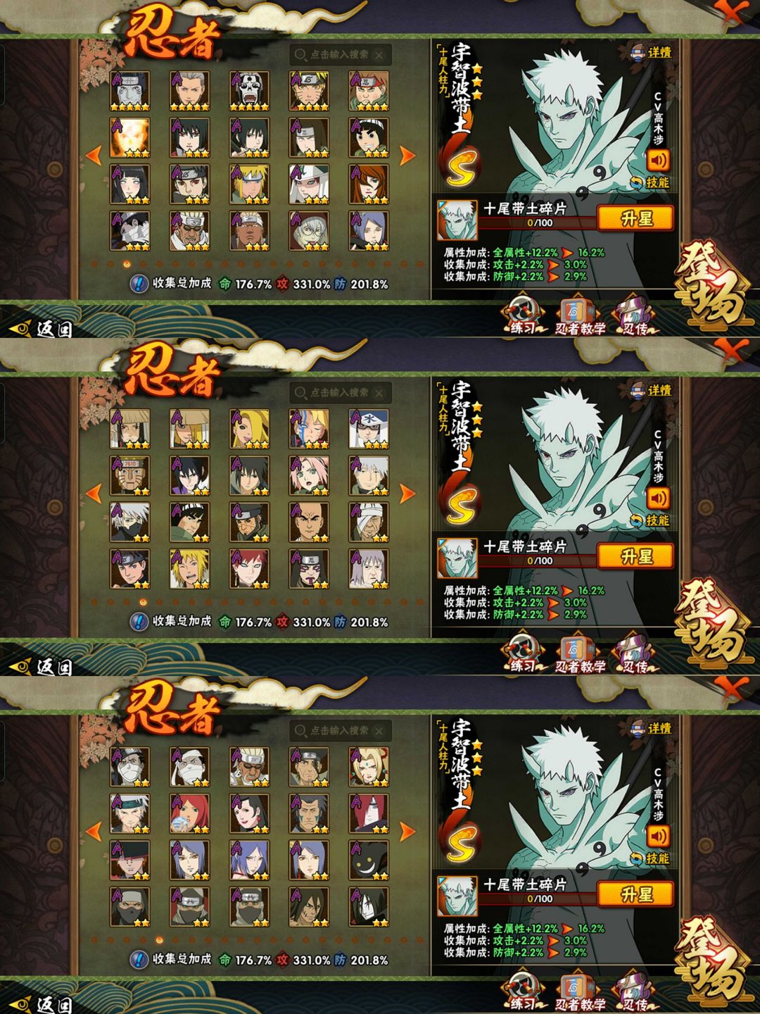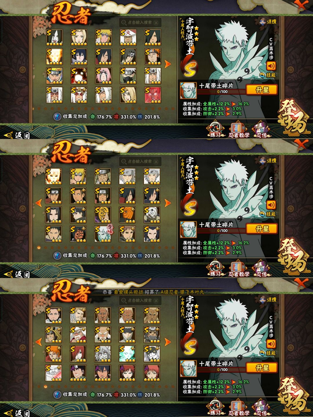 装备描述:神驹阿斯玛✨六道带土✨神威对决卡卡西✨五影会谈斑✨妖怪纲手✨仙人巳月✨侠隐佐助✨金身水门✨六尾鸣人✨泳装黑土✨秽土再不斩✨桃地再不斩✨百战鼬✨神农✨传说三忍自来也✨ 大筒木舍人✨漂泊带土✨385忍者✨全漂泊忍者 绯流琥蝎 须佐卡卡西 须佐止水 56S百战佩恩 黑绝 三代风影 忍战李 忍战雷影✨大筒木桃式✨幻之真容卡卡西 56S秽土解斑✨385忍者✨82A漂泊小南✨全漂泊忍者✨永恒佐助✨创立柱间✨漂泊佩恩✨桃式博人 ✨九喇嘛鸣人 漂泊佩恩 漂泊二代 创立柱间 青年艾 死门凯 忍战带土✨青年水门天道超✨秽土鼬 全高招忍者✨56S✨385忍✨白面具 秽土柱间✨秽土斑✨新春水门✨泳装小南✨82A 提示●游戏新机制:上号时上个租客还在线会直接显示在别处登陆,重新登录顶掉就行,我是不会恶意顶号