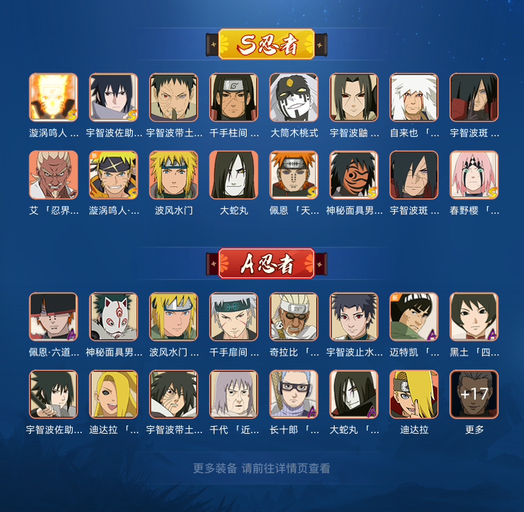 装备描述:731W❥14S❥31A❥九喇嘛鸣人❥永恒佐助❥秽土解斑❥忍战带土❥红夜面具❥