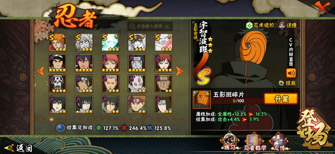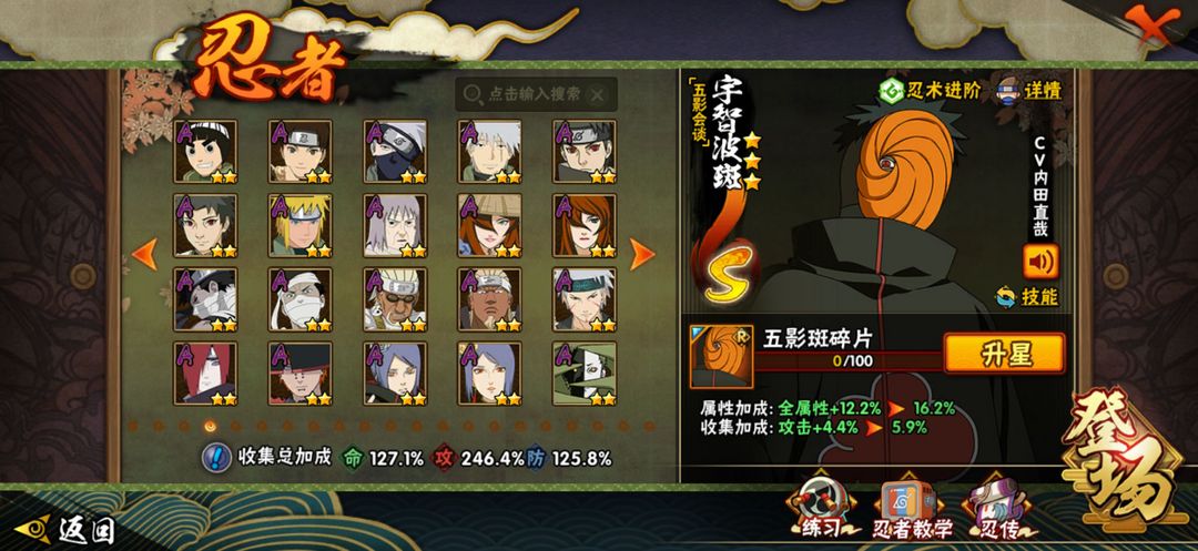 六尾-夏日鼬-五影斑-再不斩--全带土-全漂泊-46=须佐卡卡西-须佐止水-大七班-超多S