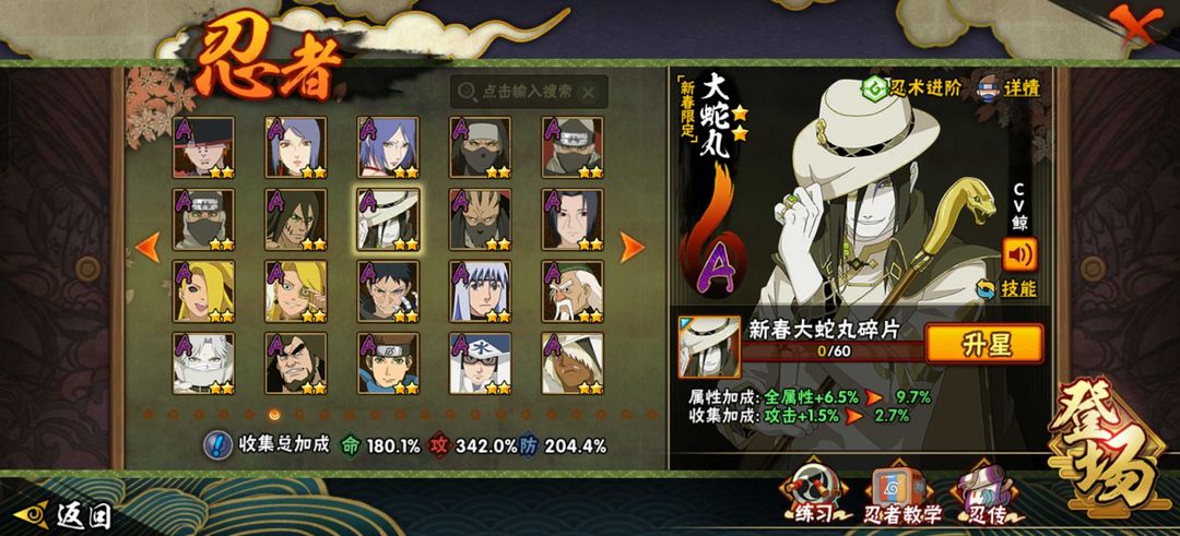 装备描述:温馨提示:遇到顶号的顶回去就可以了,这个是上一个租客没下线。租号须知:二级密码勿动,如果号主投诉密码被强制撤销将根据剩余时间推算出是谁并永久拉黑处理。金币,材料,忍者碎片,高招卷勿动,发现了也是永久拉黑处理。最后祝各位老板游戏愉快。喜欢的话可以点一波收藏❤️