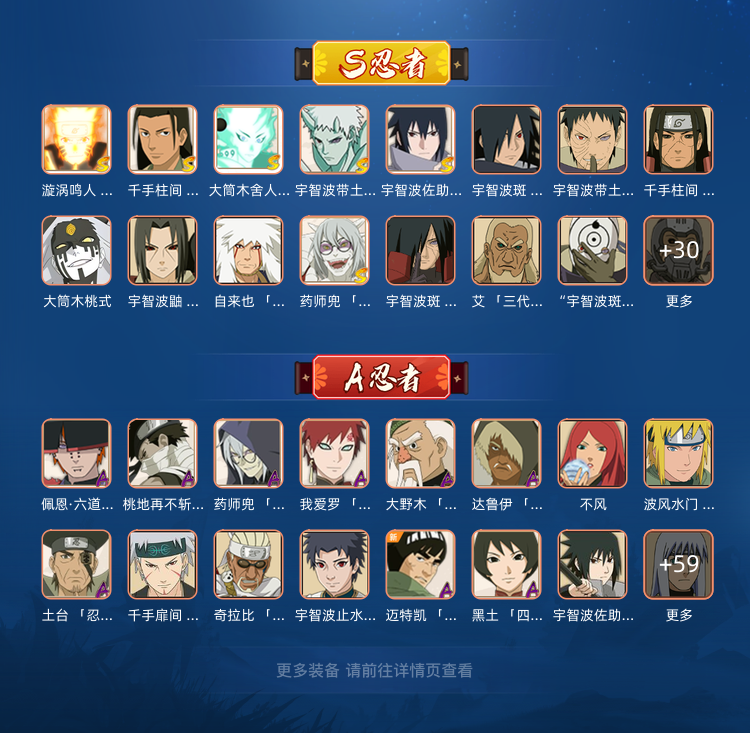 装备描述:2200w战力s47a73忍者五影斑金银角永恒万花筒佐助漂泊带土漂泊佩恩✨侠隐兜