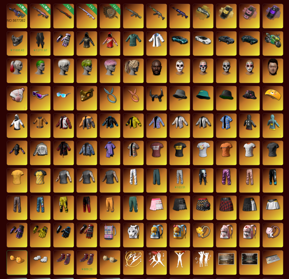 柏林全套黑金战神衣❤⑩霓虹AUG⑩火麒麟②悟空❤双头尼尔小黑盒滑雪卡崔娜可可套❤迈凯伦马丁兰博❤可排