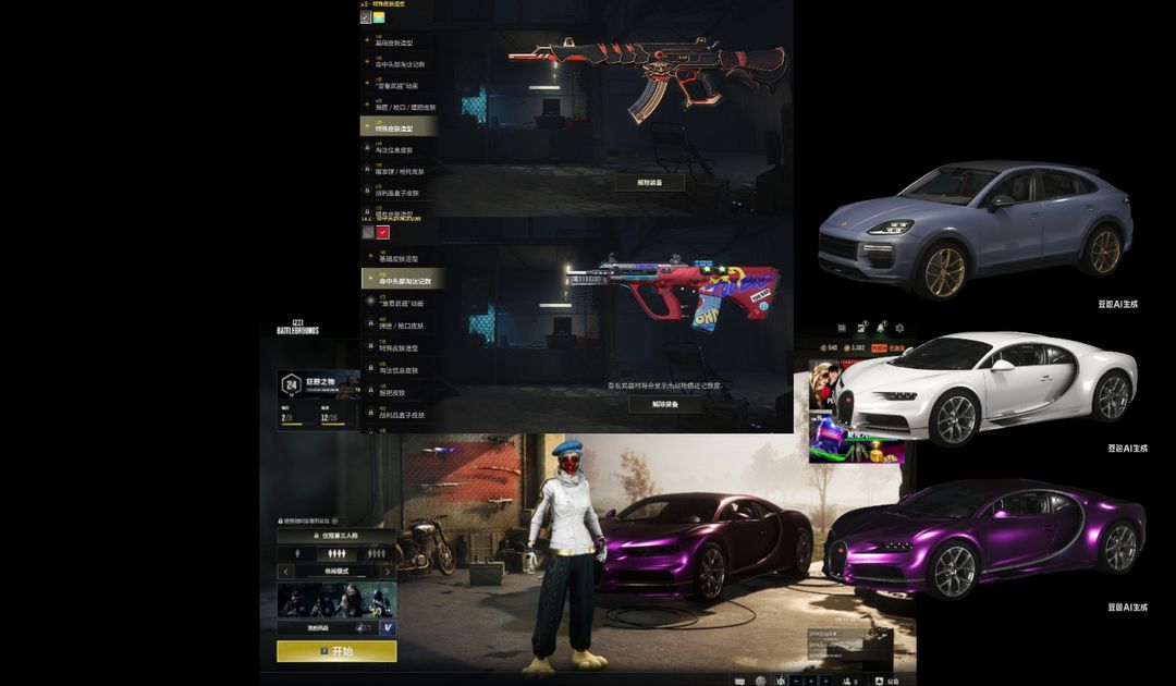 二级密码987654可排保时捷卡宴+紫白布加迪跑车⑥级妖魔ACE②异色GD-AUG①冰域GROZA
