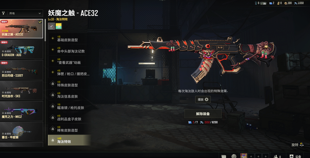 ④级妖魔之触ACE✅金色成就M762✅雪国风光M4✅灵魂枷锁AKM✅幸运骑士M24✅金色落叶SKS✅